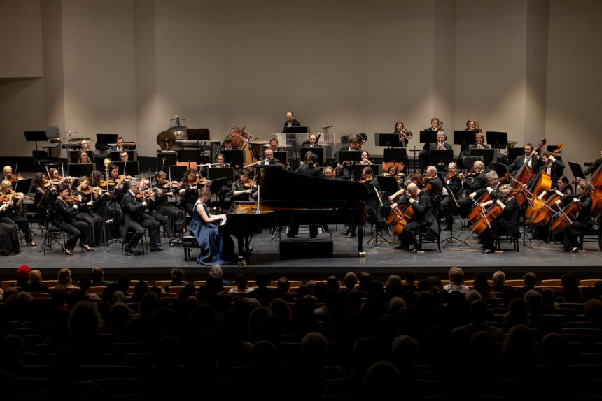 V druhé části večera jsme se vrátili zpět v čase s uvedením Čajkovského Klavírního koncertu č. 1 b moll, ikonického díla romantismu. Klára Skalková, mladá klavíristka původem z Mariánských Lázní, doznala svůj osobní vztah k tomuto dílu. Koncert, v němž se mužská vášnivost Čajkovského spojila s ženskou citlivostí Skalkové, působil jako manifest síly hudby – a její proměnlivosti skrze generace i genderové perspektivy.