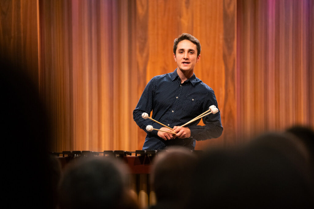 Před poslední skladbou večera dostali posluchači možnost klást otázky na téma marimba. Dozvěděli jsme se, na kolik takový nástroj přibližně vyjde, jak se převáží, a mnoho dalších zajímavostí. Mimo jiné vyšlo najevo, jak vzácné je na marimbu v běžném hudebním provozu narazit. Na otázku Ladislava Bilana „Kdo dnes slyšel marimbu poprvé?“, odpověděla takřka polovina sálu zdviženou rukou!