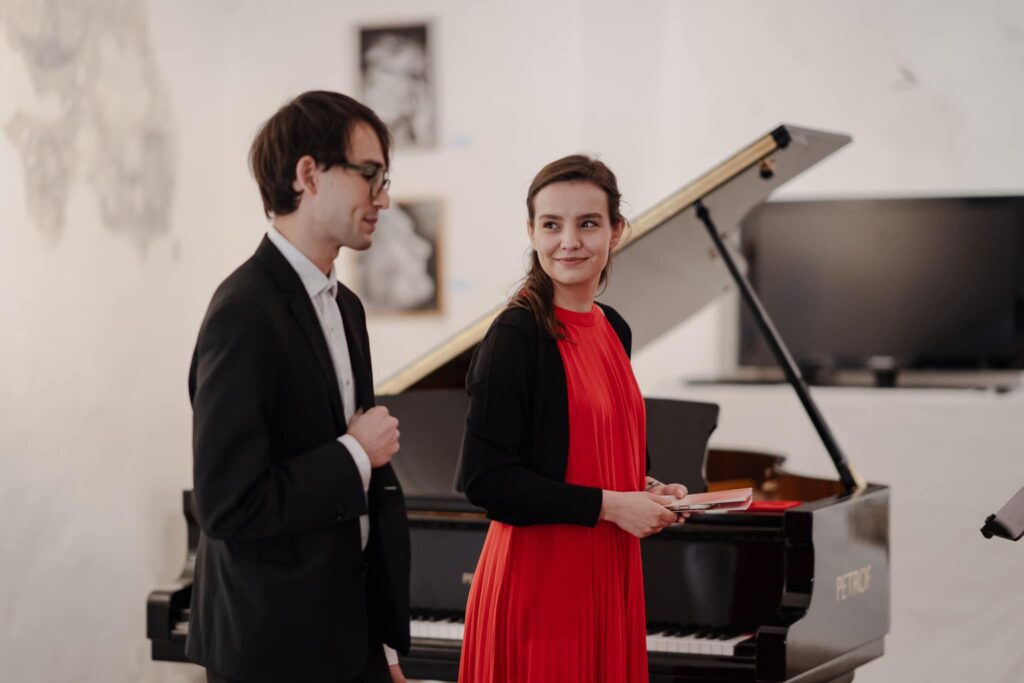 Na pódiu se představí mladá generace interpretů se zkušenostmi napříč stylovými epochami. Hybatelkou je houslistka Tereza Horáková, která se vedle klasického repertoáru věnuje i soudobé a barokní hudbě, spolupracuje s předními soubory a vystupuje doma i v zahraničí. Horáková studovala na Pražské konzervatoři u Pavla Kudeláska a nyní pokračuje na Hochschule für Musik Carl Maria von Weber v Drážďanech ve třídě Natalie Prishepenko. Již v raném věku získala ocenění v národních i mezinárodních soutěžích a prošla kurzy u předních interpretů. Horáková se věnuje se soudobé tvorbě, spolupracuje s Orchestrem Berg, sdružením Konvergence a dalšími interprety, stejně jako historicky poučené interpretaci barokní hudby, kde se setkává se soubory Collegium Marianum, Concerto Aventino či Czech Ensemble Baroque. Od roku 2021 je členkou tria Helix, specializovaného na novou komorní tvorbu českých i zahraničních skladatelů a nově pořádá také cyklus Mosty soudobé hudby, jehož poslední koncert portál KlasikaPlus.cz reflektoval ZDE.