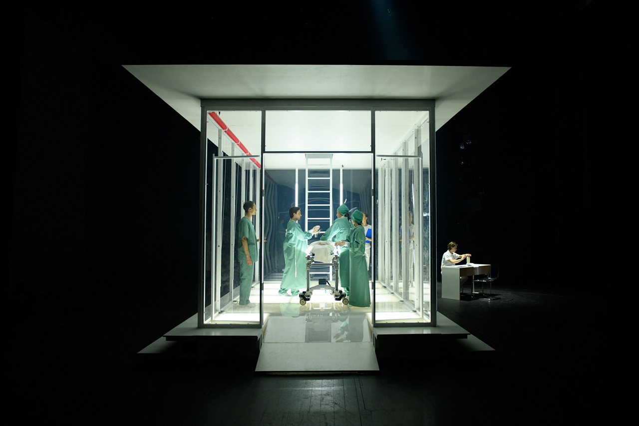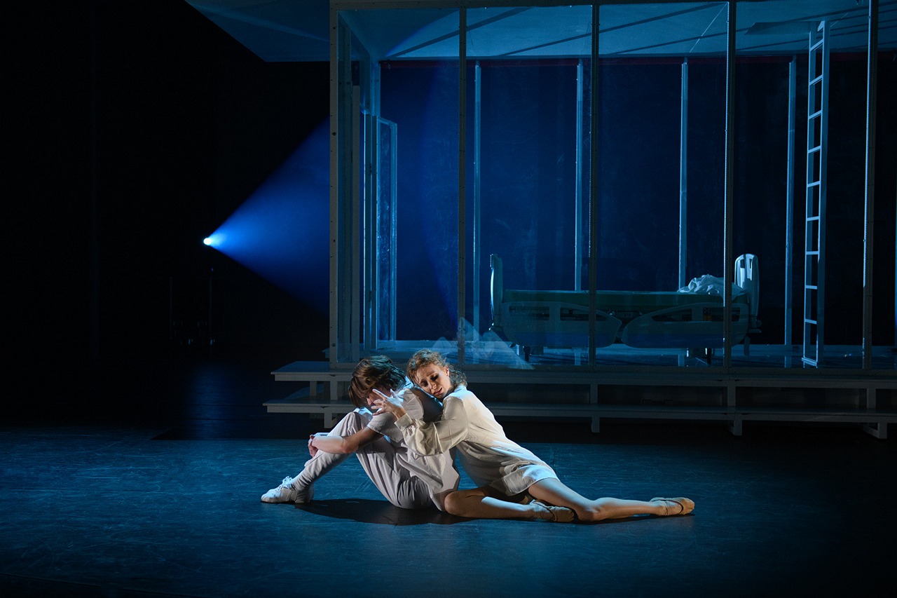 Na minimalisticky pojatej scéne Marka Cpina stojí počas celého trvania inscenácie vlastne len jeden objekt, akési „akvárium“, priehľadné zo všetkých strán. To priestor na niekoľkých miestach vhodne člení – najmä v druhom dejstve, kde je v ňom nemocničné lôžko so zranenou Erikou. V takejto podobe bola pre mňa scéna celkom funkčnou, a bolo azda zbytočné, keď ju tvorcovia zrazu doplnili popisnými rekvizitami – posteľou pri milostnej scéne Eriky a Daniela, či kelímkami s kávou v nemocnici. Trochu nadbytočne na mňa pôsobili aj projekcie, napríklad obrazy nočného mesta pri romantickej prechádzke. Verím, že by divák atmosféru vycítil aj bez takejto barličky. Nakoľko nemám tanečné vzdelanie a čerpám tak len zo skúseností nadobudnutých návštevami predstavení, nedovolím si jednotlivé výkony podrobnejšie rozoberať. Výkon Richarda Ševčíka však bol pre mňa divácky najzaujímavejší, a to aj po výrazovej stránke, kde sa mu podarilo kreovať emočne plastické momenty. Celkom zreteľný bol i jeho „prerod“ zo študenta na zodpovedného lekára.