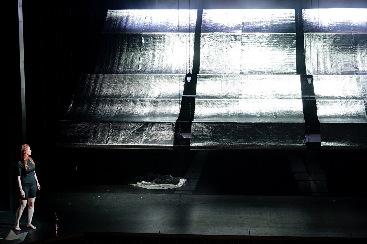 Keď si vybavujem vizuálnu stránku tejto inscenácie, mám pred očami chladne, trochu bezútešne pôsobiaci priestor s výraznými striebornými akcentami (scéna a kostýmy Adéla Szturcová, svetelný design Filip Horn). Nad celým javiskom sú rozprestreté pohyblivé, lesklé kusy niečoho, čo by som na prvý pohľad asi označila za termodeku. V striebornom rúchu rozvážne prichádza aj Vojtěch Šembera, ktorý nesie striebornú sukňu, do ktorej sa Markéta Schaffartzik, dovtedy v neopréne, oblieka. Ligotavo strieborný je aj tanečník Patryk Zamojski, ktorý svojím strhujúcim vstupom vnáša do priebehu celého ešte znepokojivejší podtón. Hlavní protagonisti spolu dobre komunikovali, hodili sa k sebe aj hlasovo. Dominantnou protagonistkou však bola najmä Schaffartzik, ktorá svojím pestrým, plastickým prejavom dokázala množstvo scén naplniť celkom sama. Laytonova hudba v sebe nenesie mnoho výrazných zmien či kontrastov. Autor si vystačí o subtílnejším výrazivom a so statickejším priebehom. Prevažujú kratšie myšlienkové prvky, niekedy tak pôsobí štruktúra fragmentárne (aj v tomto prípade v precíznej interpretácii Ostravskej bandy). Stále sa ale vyskytujú aj jednoznačne vymedzené motívy, o čom svedčí napokon aj to, že si ich mnohí pri odchode zo sály pospevovali. Celok má svojim spôsobom formu oblúku – výrazným prvkom je v tomto zmysle najmä to, že úvod a záver sú takmer totožné. Zo všetkých troch inscenácií zožala práve táto najväčšie ovácie – a myslím, že sa skutočne jednalo o najkomplexnejší počin, hoci celý večer bol nesmierne podnetný. O nových impulzoch v súčasnej opere tak budeme môcť premýšľať ešte dlho.