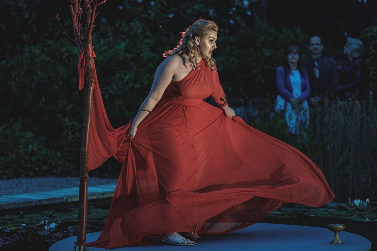 „Režisérka Magdalena Švecová situovala výjev na leknínové jezírko v parku, kde za tichého doprovodu loutny zpívá slavné Monteverdiho lamento Markéta Böhmová.“