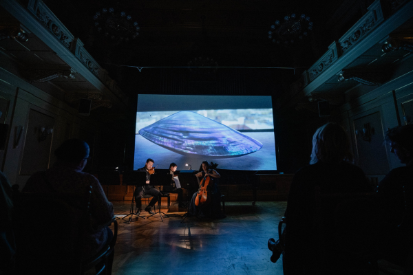 „Pozornost upoutala realizace skladby, kdy trio hrálo s akusticky zesílenými nástroji, společně s elektronickou stopou, která přinášela do sálu nejrůznější zvuky přírody i civilizace.“