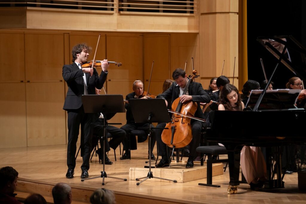 VP: Samozřejmě se snažíme co nejhezčí barvy hledat ve všem, ale tady je barva velice výraznou složkou a je žádoucí tyto témbrové rozdíly zdůraznit. Snažíme se experimentovat například s tlakem smyčce a rychlostí tahu, abychom získali dojem lehkého šumu a jakéhosi zamlžení, které dodá impresi. Kde je to žádoucí, se naopak snažíme o syrovost zvuku. Zároveň je pak výzva najít ten správný zvuk pro spojení s klavírem, který je hodně pod pedálem. Vyžaduje to tedy zase trochu jiný přístup…