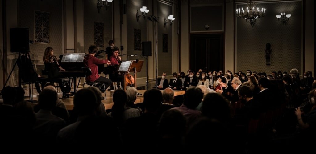 VP: To určitě! My jsme každopádně od začátku věděli, že pokud se chceme hlásit na velké soutěže, se soudobkou se budeme muset seznámit blíž. Rihmovo trio byla první skladba, do které jsme se rozhodli pustit, a měli jsme velké štěstí, že jsme v rámci ECMA měli možnost pracovat s violistou a profesorem Univerzity v Bernu Patrickem Jüdtem, který se na soudobku specializuje, zná se s obrovským množstvím současných autorů, ať už to je Kurtág, Lachenmann nebo jiní. Otevřel nám obzory a ukázal, jak přistupovat k nácviku takových skladeb. Teď už máme tuhle skladbu pod kůží, což dělá velkou část posluchačského zážitku.