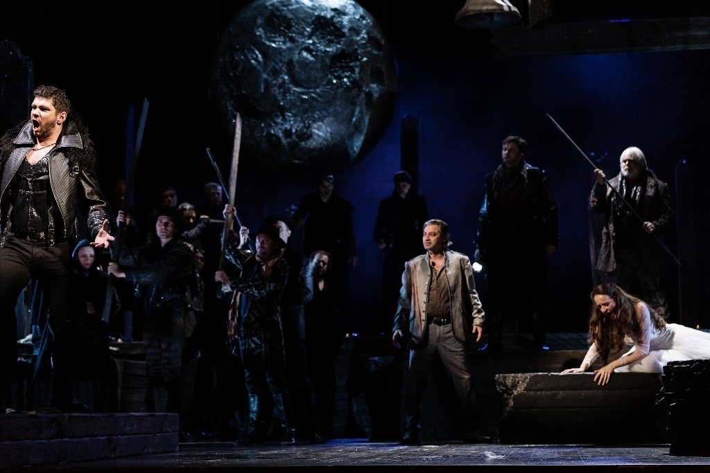 Není třeba se pozastavovat nad komplikovaným dějem nebo nad detaily režijní realizace, například nad jedním z mála abstraktnějších prvků – nad dlouhými úzkými látkovými pásy, jimiž jsou občas jednající postavy reálně nebo symbolicky spoutány. Jde o celkový dojem a účinek – a ten byl při nedělním představení, dva dny po premiéře, dostatečně přesvědčivý, jednoznačný, po ryze interpretační stránce hodný úcty.Giuseppe Verdi učinil před 170 lety s libretem Salvatora Cammarana, mimochodem také autora libreta Donizettiho Lucie z Lammermooru, maximum. Jde o příběh s výrazným „cikánským“ koloritem, zároveň o opravdovou tragédii s vyhrocenými emocemi, s napínavým očekáváním a drastickým rozuzlením. Slovenský režisér Peter Gábor tyto momenty našel a zdůraznil. Předkládá temný příběh, nijak zvlášť autenticky středověký, nijak kontroverzně aktualizovaný – nabízí romantickou pověst o fatálních záměnách, o vraždách a pomstě, o nenaplněné velké lásce, o pozdním poznání. Kostýmy a scéna jsou trochu „gotické“ ve smyslu romantické obliby tajemna, hrůzy, osudových prokletí, starých zřícenin a připomínek dávného rytířského světa… Režie však především nechává podstatný prostor hudbě, ta je v tomto případě opravdu hlavním nositelem dramatického obsahu.