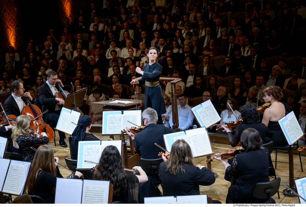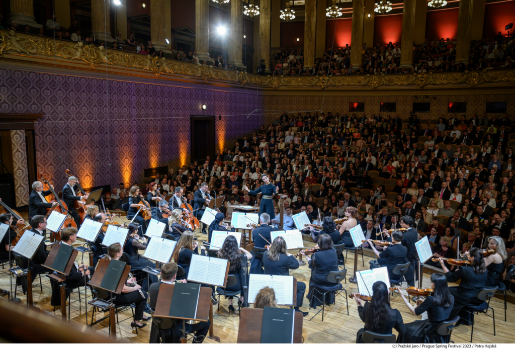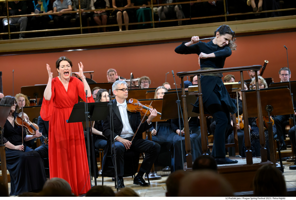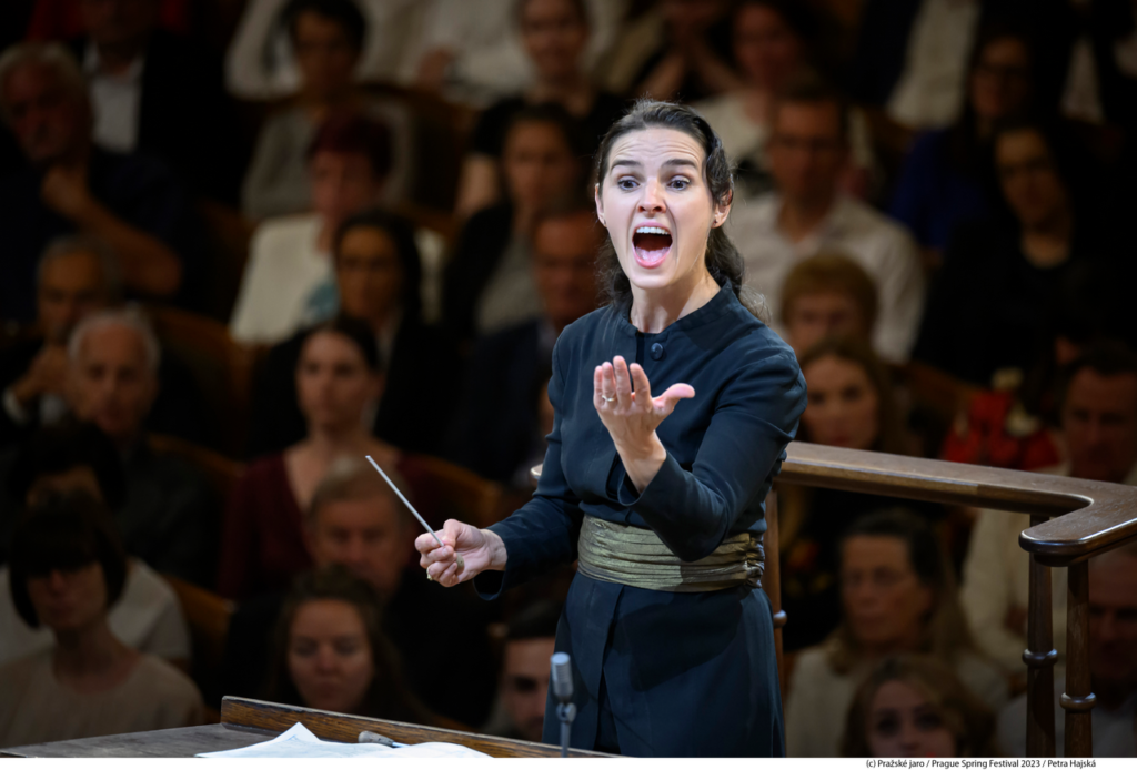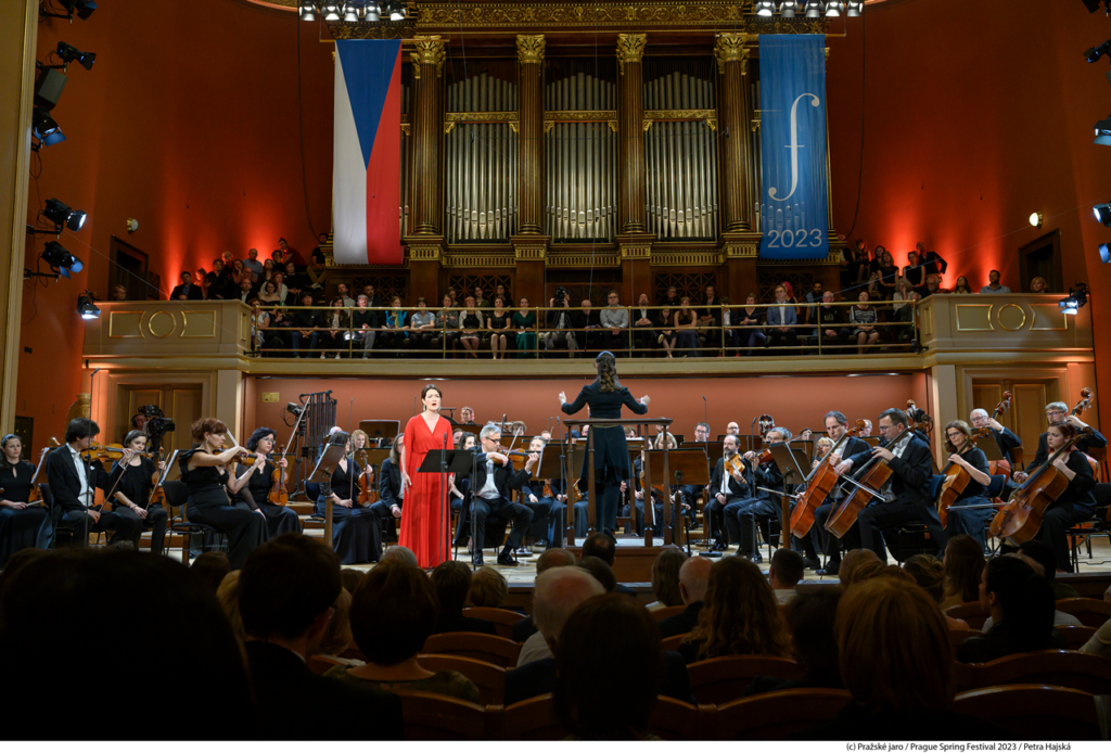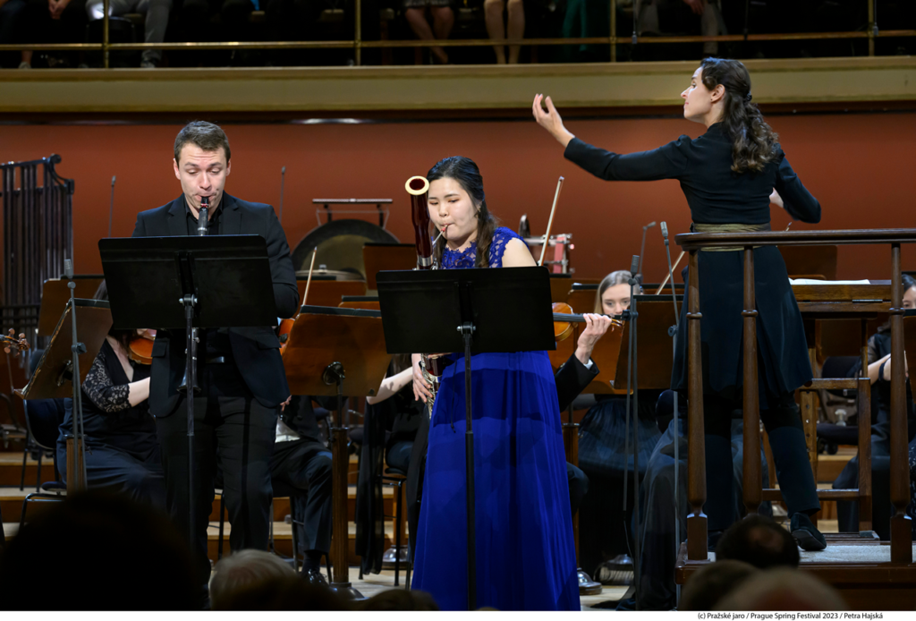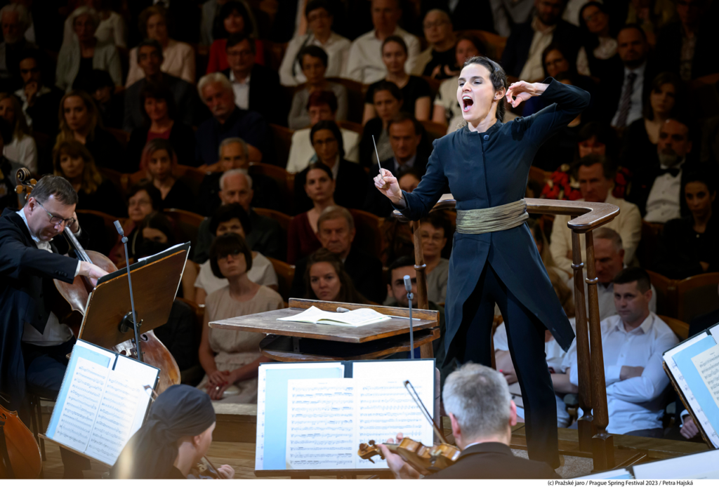 „V čele komorního orchestru PKF – Prague Philharmonia jako protagonistka večera stanula ukrajinská dirigentka Oksana Lyniv.“