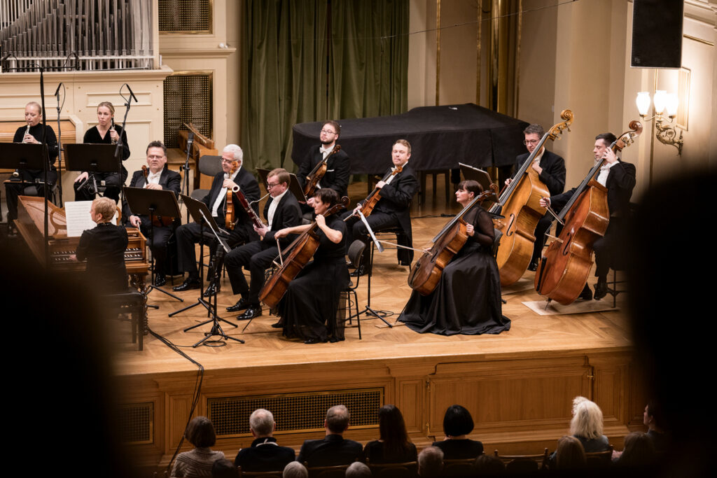 Sál Besedního domu byl zcela vyprodaný a pódium bylo přesně pro tento typ koncertu. Komorní smyčcový orchestr, rozšířený o sólové dechové nástroje a cembalo uprostřed, u kterého spolupracovala s orchestrem Barbara Maria Willi. Sólového partu houslí, od kterých současně i dirigoval orchestr, se ujal italský houslista a dirigent Fabio Biondi. Ten patří k význačným současným interpretům barokní hudby a jeho přístup od počátku sliboval výjimečný zážitek.