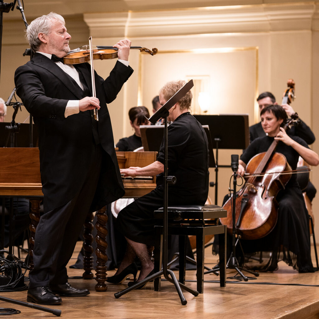 „Sólového partu houslí, od kterých současně i dirigoval orchestr, se ujal italský houslista a dirigent Fabio Biondi.“