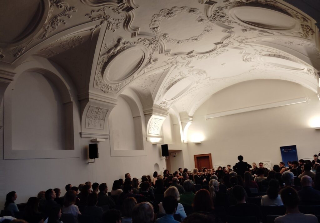Nevím, jak tomu bylo v ostatních městech, ale v Klatovech se refektář jezuitské koleje zaplnil do posledního místa. Své potomky přijeli podpořit rodiče a prarodiče, své svěřence bývalí a stávající kantoři, nechyběli však i pravidelní návštěvníci tamějších koncertů. Musím velice pochválit pečlivě připravený tištěný program, v němž je jmenovitě uvedeno nejen obsazení jednotlivých nástrojových skupin, ale i jména učitelů ZUŠ a profesorů konzervatoře a dalších umělecky zaměřených škol. I tento seznam je velice důležitý, abychom si udělali představu, odkud se jednotliví hráči rekrutují a kdo se podílí na jejich přípravě. Z pěti plzeňských „zušek“ jednoznačně převažují žáci ZUŠ Terezie Brzkové a ZUŠ v Sokolovské č. 54. Na nedělní zkoušky však do Plzně dojíždějí i malí a mladí hráči ze Sušice, Domažlic, Dobřan, Přeštic a Karlových Varů, sekce posilují i studenti Gymnázia a Hudební školy hl. m. Prahy, Pražské konzervatoře a Konzervatoře Plzeň.