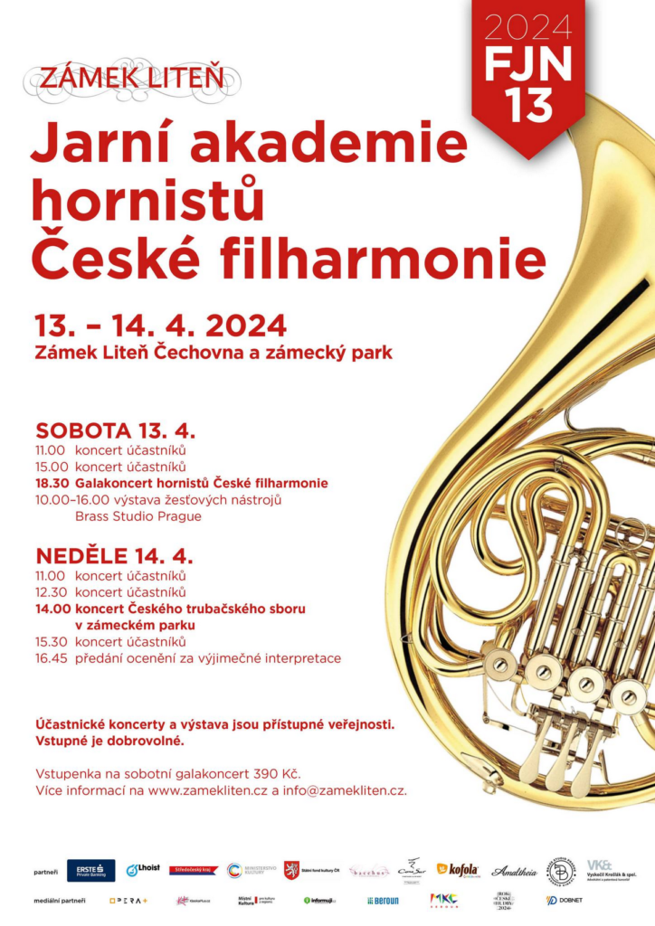 Lesní roh již dávno nepatří jen do lesů. Mistři nástroje se sjedou na zámek Liteň nedaleko Karlštejna 13. – 14. dubna. Letošní čtvrté celostátní setkání studentů, pedagogů, umělců i posluchačů při Jarní akademii hornistů České filharmonie se stalo tradicí a přínosem pro obor díky spojení profesionálních hudebníků se studenty.