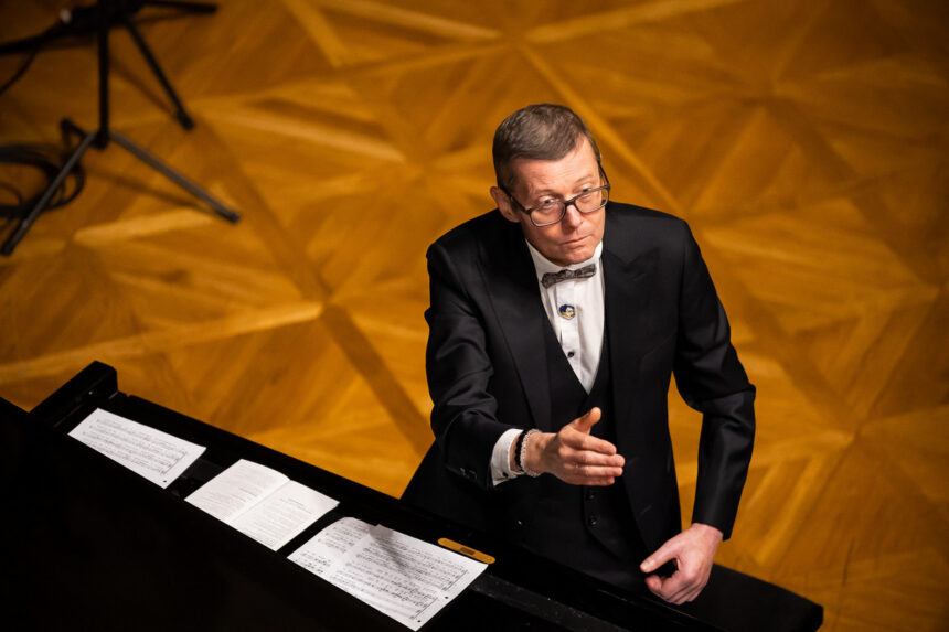První, větší polovina jednoho z posledních koncertů 53. ročníku Moravského podzimu patřila představení tvorby a cappella a tvorby pro klavír litevského skladatele, ale mimo jiné také malíře, Mikalojuse Konstantinase Čiurlionise, jenž v letošním roce oslavil své 150. narozeniny a který představoval výraznou uměleckou osobnost své doby během nacionálních snah litevského národa.