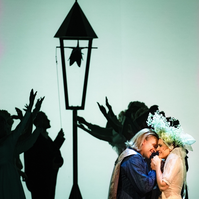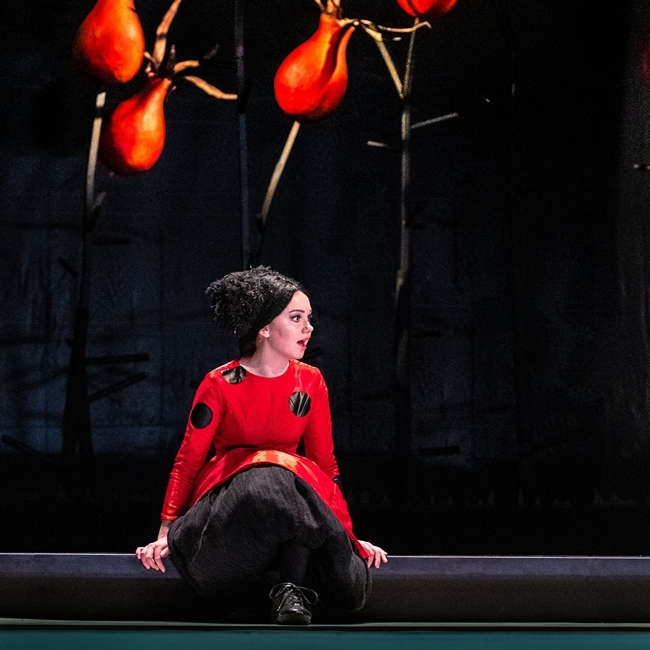 V režii šéfa opery Tomáše Ondřeje Pilaře se na nápadité scéně Petra Vítka pohybuje velké množství aktérů (přibližně 150). Kromě sólistů a dětských sólistů, jejichž role jsou mimochodem psány bez rozdílu obtížnosti jako pro dospělé, posíleného operního sboru a několika členů baletu, jemuž vytvořil choreografii Martin Šinták, účinkují též děti z Dětského sboru DJKT a Baletní školy DJKT. Scéně dominují přírodní motivy – už při předehře můžeme vidět oponu s bylinami a jejich latinskými názvy jakoby z herbáře; zaujmou oblaka, lucerna, symbolická střecha domečku ze žebřin, obrovské chudobky s rozsvíceným středem na místech, kde žili broučci, kteří nepřečkali zimu, a mnohé další momenty podtržené nápaditým světelným designem Zuzany Bottové. Jednotlivé scény se střídají v průběhu děje doslova filmovou rychlostí, celkem dojde k sedmnácti výměnám. Kostýmy, vycházející z lidového oblékání konce 19. století, navrhla Dana Haklová. Osobně mne velmi zaujal opakující se a tím stmelující motiv pruhů.