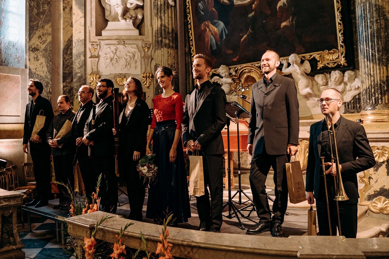 Sopranistka Lucie Rozsnyó a basista Jaromír Nosek za svými kolegy v kráse hlasu ani v technické zdatnosti rozhodně nezaostávali. Ansámbl díky tomu získal velmi krásou, sytou a především – což se nemusí vždy podařit – kompaktní barvu. S přehledem se prosazoval přes instrumentalisty, ale přitom i s nimi tvořil jednolitý celek. Dohromady tak obě „kapely“ dokázaly přesně naplnit nádherný prostor kaple, která svou architekturou dodávala krásné hudbě odpovídající atmosféru.