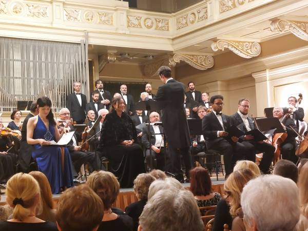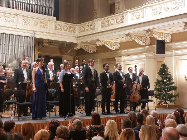 Tenorového sóla se místo onemocnělého Michala Kuči zhostil sborový nováček Theophilus Štourač. Menší komorní tenor se v prostorách Besedního domu dobře nesl a působil klidně, odevzdaně a vyrovnaně, s jasnou dikcí. Ta působila jako zjevení především proto, že chlapec, asi dvacetiletý, je temné pleti, s výraznýma temnýma očima a černými kudrnami. Narodil se řeckým rodičům a vyrostl u rodičů českých a vystudoval české školy. Vzbuzuje naději, že má v sobě velký potenciál jak hlasový, tak intelektuální. Jeho debut byl povedeným vstupem do pěveckého života. Basový part zpíval zkušený bard, který je na sólové party už zvyklý. Václav Jeřábek přesto také překvapil, a to větší uvolněností zvuku, basovou barevností a bezprostředností výrazu. Soprán Andrey Ľuptákové byl jásavý a více uvolněný, s jasnou zvukovou špičkou a alt Marie Vrbové hladil a konejšil v měkké barevnosti. Orchestr Czech virtuosi hrál uvolněně a profesionálně a Michael Dvořák se mohl spolehnout na bezprostřední a jistý výkon.