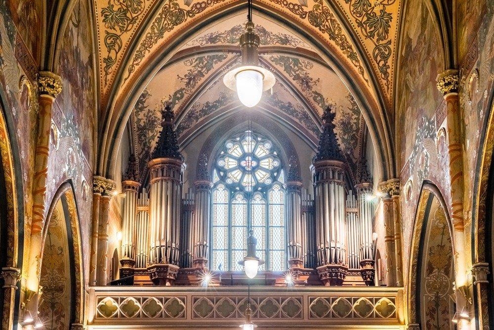 „Jednotu se stylem a estetickým pojetím bohatě zdobeného interiéru baziliky tvoří od roku 1903 velké varhany z dílny bratří Paštiků.“