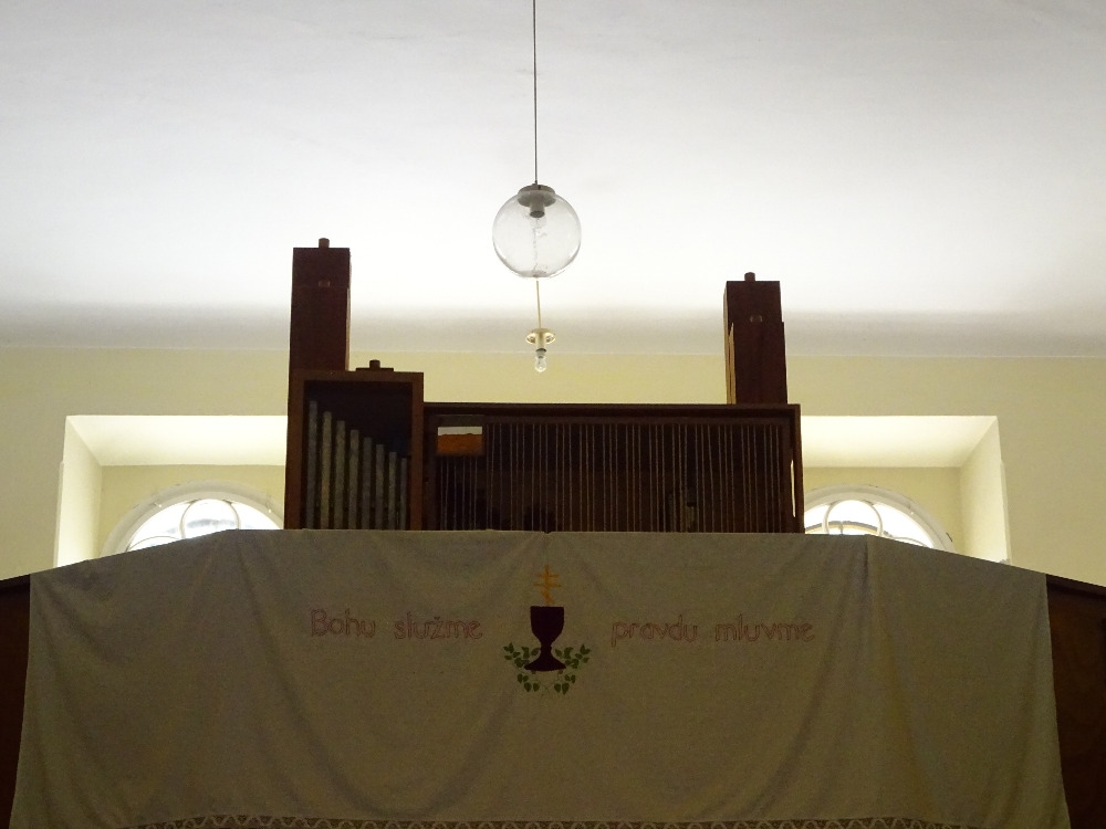 „Bohoslužby se doprovázely zpočátku jen na pedálové harmonium, pak na digitální varhany.“