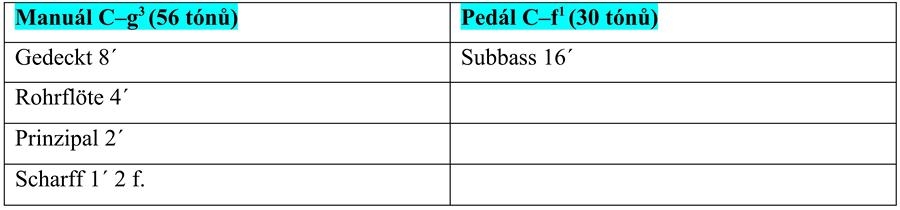 „Jedná se o malý, plně mechanický jednomanuálový nástroj s pedálem a pěti rejstříky.“
