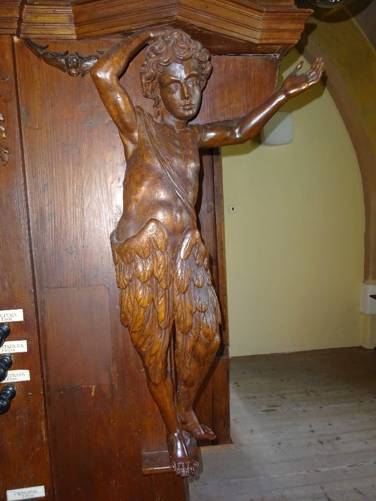 „Nástroj má překrásný, osově symetrický prospekt, jež obsahuje mnoho řezeb. Obsahuje sedm píšťalových polí, uprostřed píšťalovou věž. Píšťaly jsou zdobené tordováním a prolamováním.“