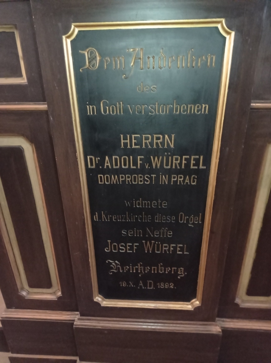Téměř nedotčené varhany bratří Riegerů v nedalekém kostele sv. Kříže nám dávají nahlédnout kousek dál do historie této významné firmy. Ve třicátých letech dvacátého století byly už dispozice v duchu estetického vývoje obohacovány o alikvotní hlasy a další specifika odkazující ke vzrůstajícímu zájmu o historické nástroje. V neporušené a nezměněné podobě můžeme bohatství a kvalitu takto postavených nástrojů ocenit v poutním kostele v Hejnicích (op. 2379) nedaleko od Liberce – tam se nacházejí varhany jen o rok starší, než jsou u sv. Antonína (op. 2440). Nástroj u sv. Kříže (op. 367, rok 1892) naproti tomu představuje čistě romantický zvukový ideál.