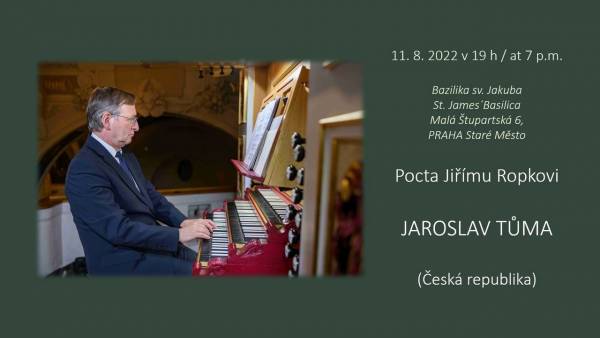 Šestačtyřicet let byl varhaníkem v bazilice svatého Jakuba v Praze na Starém Městě Jiří Ropek, od jehož narození uplynulo 1. července sto let. Založil v kostele veřejností oblíbené a navštěvované varhanní hodinky, byl úspěšným koncertním hráčem vystupujícím i v zahraničí, stejně jako jeho někdejší učitel Bedřich Antonín Wiedermann také komponoval a po dvě desetiletí vyučoval na Pražské konzervatoři. Jaroslav Tůma má dnes na 27. mezinárodním varhanním festivalu ve stejném chrámu recitál, který je Poctou Jiřímu Ropkovi.