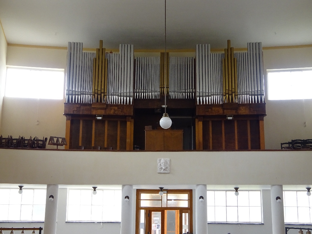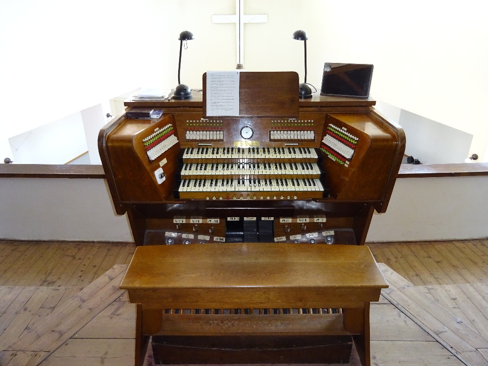 V modlitebně církve v jedné z budov se nacházejí kromě klavíru i malé jednomanuálové mechanické varhany s pedálem, o kterých bude pojednáno jindy.