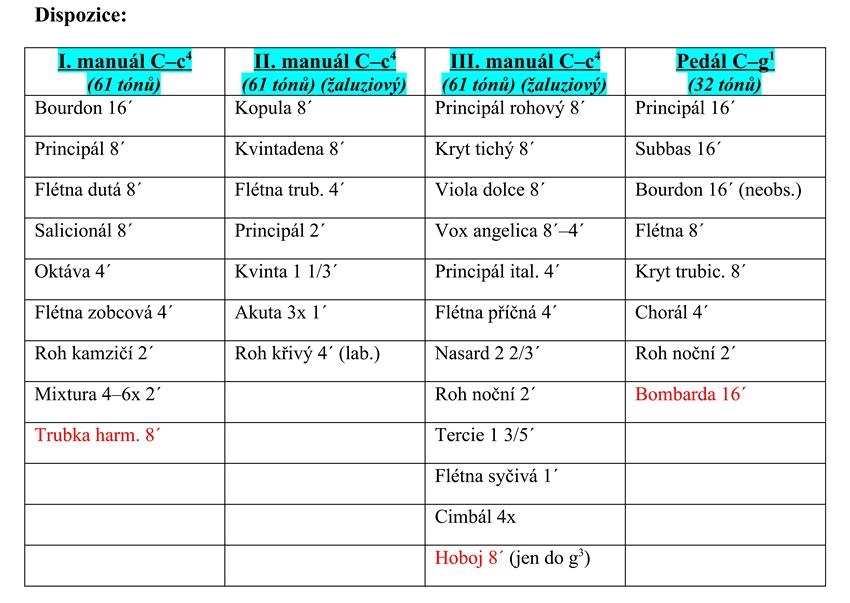 „Dispozici nástroje navrhl profesor pražské konzervatoře a koncertní varhaník Jan Bedřich Krajs.“