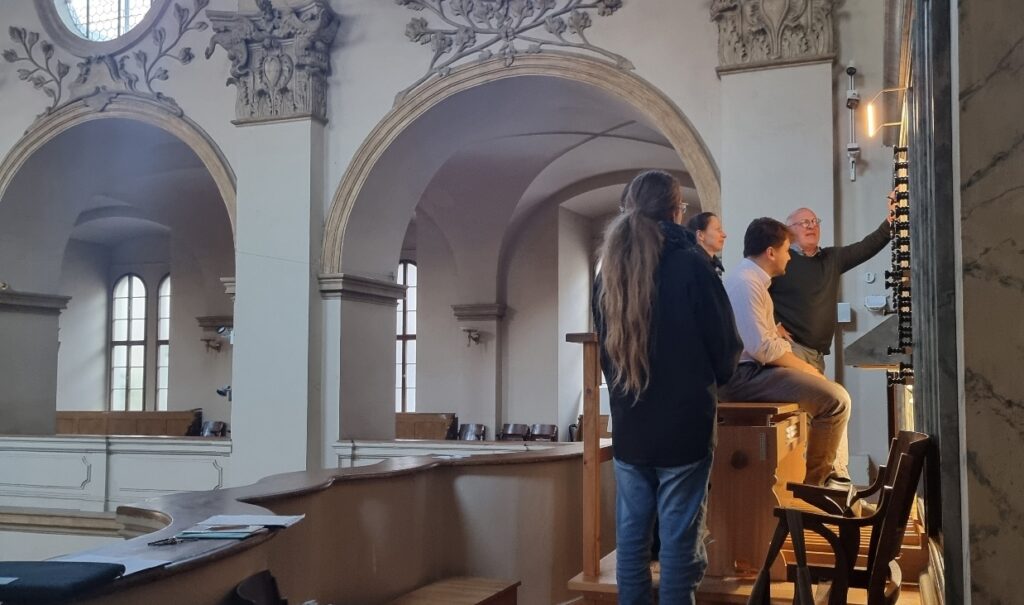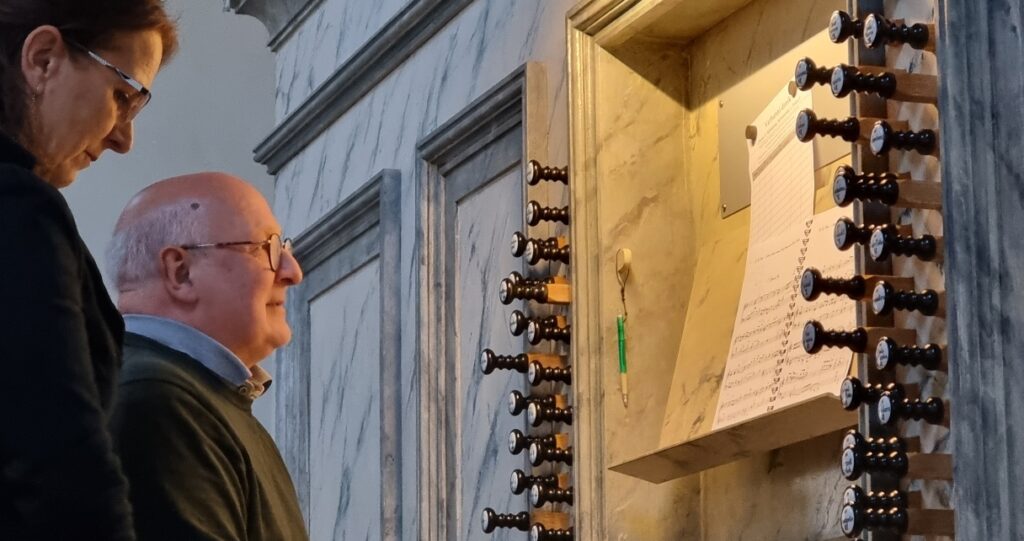 „Jsme čtyři, střídáme se, znamená to, že tam jedu tak třikrát čtyřikrát do roka. A pak tedy ve Versailles strávím víkend. Ale navíc je něco, čemu říkáme návštěvní konference – setkání u varhan, kdy během jedné hodiny před mší má zhruba tak padesát návštěvníků možnost přijít až k varhanám.“ Varhaník jim vykládá o varhanách obecně, potom o těch, u kterých jsou, a pak hraje repertoár, který k nim náleží, jako třeba Françoise Couperina.