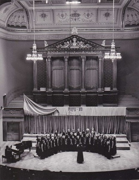Od konce války sídlí v Rudolfinu Česká filharmonie a tehdy byla v budově zároveň umístěna hudební fakulta nově zřízené Akademie múzických umění a varhanní oddělení Pražské konzervatoře. Studenti varhan (a mezi nimi i já) využívali této šťastné symbiózy a možnosti vniknout v poledních pauzách mezi zkouškami orchestru do sálu, a aniž je kdokoliv kontroloval, vytáhnout roletu u hracího stolu a odcvičit skladby na koncertní nástroj v odpovídající akustice.