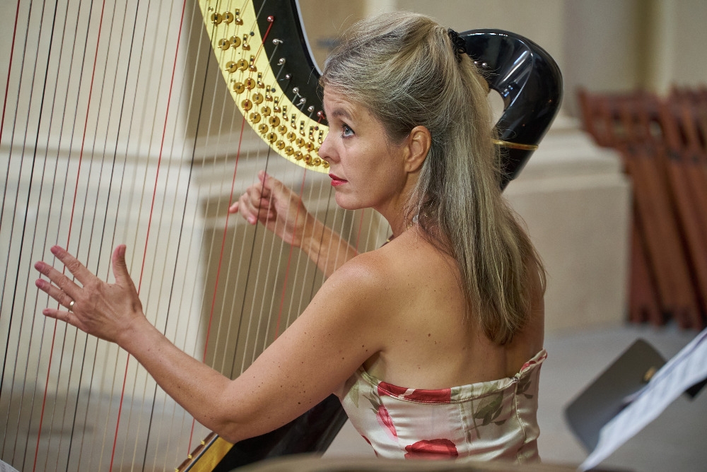 Následující Sonáta c moll pro sólovou harfu od Jana Ladislava Dusíka nás přenesla do úplně jiné atmosféry. Je jistou zajímavostí, že plodný autor, jehož manželka i dcera byly znamenité harfistky, věnoval tomuto nástroji poměrně málo skladeb a věnoval se především klavírní tvorbě. Snad proto připisují některé zdroje autorství sonáty Dusíkově ženě Sofii Corri. Nicméně právě tato zhruba sedmiminutová sonáta patří k velmi oblíbeným repertoárovým číslům plejády světových harfistů. Brilantní provedení skladby, navíc v nádherném prostředí kostela v Kuksu, navodilo doslova kouzelnou atmosféru. Především druhá, pomalá věta v jemné dynamice okouzlila posluchače podmanivým spojením prostoru a zvuku.