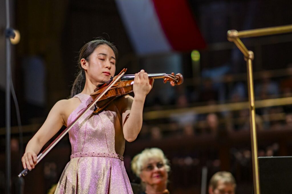Začíná se jemně, jakoby z ničeho, dlouhodechou kantilénou houslí, která se pozvolna zahušťuje, obohacuje vícehlasou, souzvukovou hrou. I když je Prokofjevův raný neoklasicismus ve své podstatě smířlivý, a to navzdory vzrušené době svého vzniku na začátku dvacátého století, zasloužila by si interpretace tohoto díla celkově přece jen více vzruchu, razance, či průbojnosti. Pravidelně se střídají sólové linie s figurativními postupy vedenými rozmanitou, zejména flažoletovou artikulací. Zde však nastal nejednou problém, když perfektně vymodelované, efektní a technicky mimořádně náročné figurace začaly poněkud zanikat ve zvuku orchestru. Tak se to alespoň mohlo jevit z křesel koncertní síně. Mikrofonová technika a zkušenosti zvukových mistrů, kteří tuto mimořádnou hudební událost snímali pro záznam a rozhlasový přenos, s tím však jistě problém neměly. O tom, že zejména v suverénní vícehlasé hře, v kombinaci pizzicato levou rukou a současně hrou arco, jsou hlavní devizy houslistčina mistrovství, se nepochybně bavila porota loňské interpretační soutěže a náležitě to ocenila, stejně tak, jako i publikum zde, ve ztišené Smetanově síni při poslechu krátkého, precizně předneseného přídavku – části L‘Aurore ze Sonáty pro sólové housle č. 5 od Eugèna Ysaÿeho.