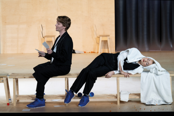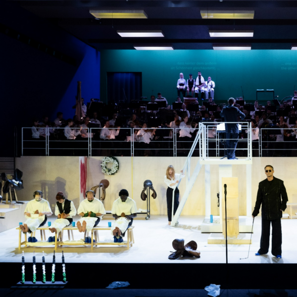 „Režisérka Marlene Monteiro Freitas charakterizuje svůj režijní přístup jako balancování mezi křehkostí a monumentalitou. Zasadila operu do varietního prostředí, které výborně konvenuje provizornímu industriálnímu interiéru v hale Muzea Quartiere.“