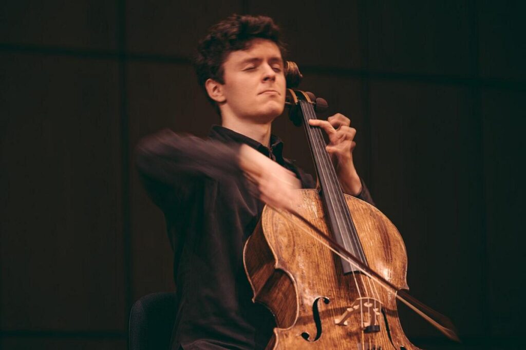 Efeu! To je skladba od Thomase Demengy, violoncellisty a skladatele, který zároveň učí u nás na škole v Basileji. Napsal ji pro soutěž Emanuela Feuermanna v roce 2010. Slovo Efeu zde nese dva významy, v němčině znamená břečťan, ale je to i zkratka jména Emanuel Feuermann. Sám skladatel říká, že se odkazoval víc na Feuermanna, jednoho z naprosto zásadních cellistů první poloviny 20. století. Zemřel v necelých čtyřiceti letech, tedy hodně mladý, a s odkazem na to je ve skladbě citován i Bachův chorál Alle Menschen Müssen Sterben. Zároveň se ale nedokážu zbavit představy břečťanu. Efeu je jedna z těch skladeb, při jejímž poslechu mi před očima vyvstává neuvěřitelně konkrétní programní příběh. Nestává se mi často, abych vnímal jasnou strukturu příběhu skladby, ale tady mám v hlavě úplný minifilm.