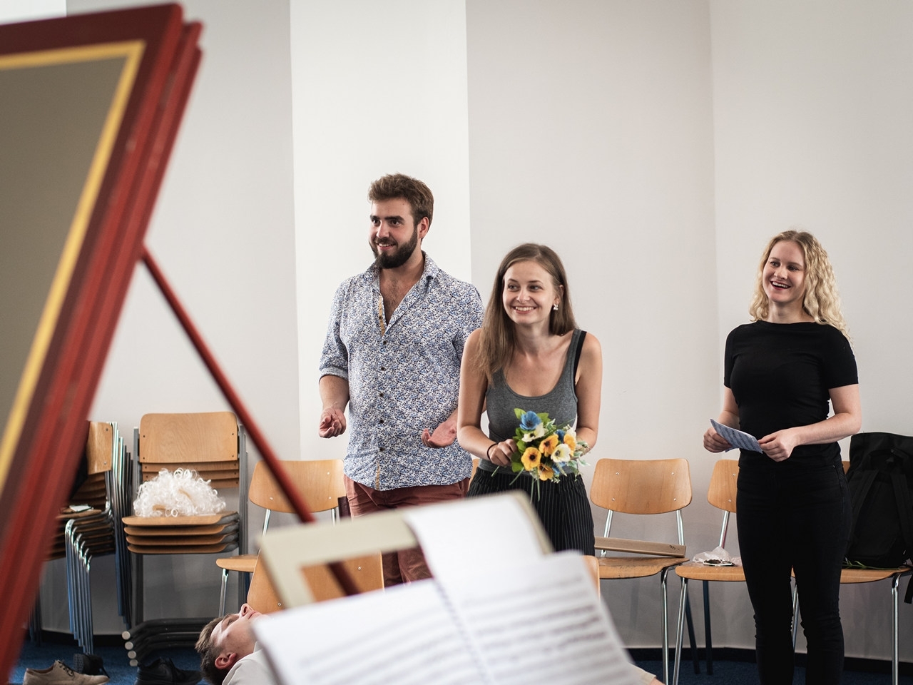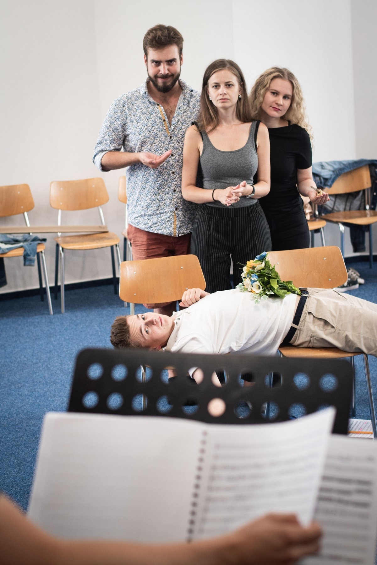 V. Novotný: Celé to začalo tak, že jsem kdysi dávno objevil nahrávku této opery. Poprvé ji uvedl Vojtěch Spurný v Zámeckém divadle v Českém Krumlově. Už v tehdy jsem si pohrával s myšlenkou operu provést. Je to krásná buffa s komorním obsazením – dva tenory a dvě sopranistky. Když jsme minulý rok přemýšleli nad programem příštího ročníku, byla to pro nás jasná volba. Opera je pro nás nesmírně zajímavá, dokonce jsme si ji oba zvolili jako téma našich bakalářských prací. Máme tak možnost propojit uměleckou práci s vědeckou. Znalost historického a kulturního kontextu je pro samotnou interpretaci nesmírně přínosná a obohacující. V rámci výzkumu se dostaneme k takovým podrobnostem, jako byla cena kostýmů nebo výše honoráře violoncellisty v orchestru.