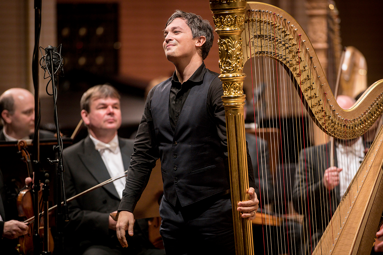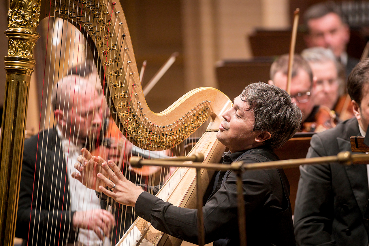 Druhou skladbou, která byla také pro mnohé posluchače hlavním lákadlem tohoto koncertu, byl Koncert pro harfu a orchestr Es dur, op. 74 Reinholda Glièra z roku 1938. Sólového partu se ujal mladý francouzský harfista Emmanuel Ceysson. Toho předcházela pověst špičkového hráče světových kvalit, čerstvě jmenovaného prvním harfistou Losangeleské filharmonie. A tato pověst nelhala. Glièrův koncert patří k nejhranějším, ale zároveň technicky nejnáročnějším koncertům pro tento nástroj. Však harfa hraje až na několik málo taktů pořád a jedna nástraha střídá druhou. Ceysson posluchače zaujal od prvních tónů, kdy dokázal zpěvně vyklenout hlavní akordické téma. Barevnost a znělost, s jakou nás provázel celou skladbou, byla nesmírně příjemná. Veškeré melodické fráze byly vystavěny s potřebnou dlouhodechostí, tolik charakteristickou pro ruskou melodičnost. Na druhé straně všechny technické nástrahy zvládal s takovou lehkostí, až by mohli posluchači zkonstatovat, že je to vlastně „brnkačka“. Není!