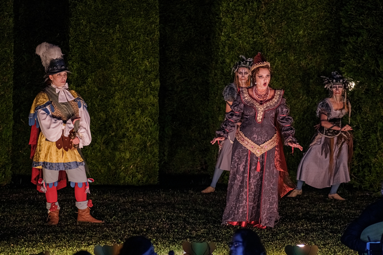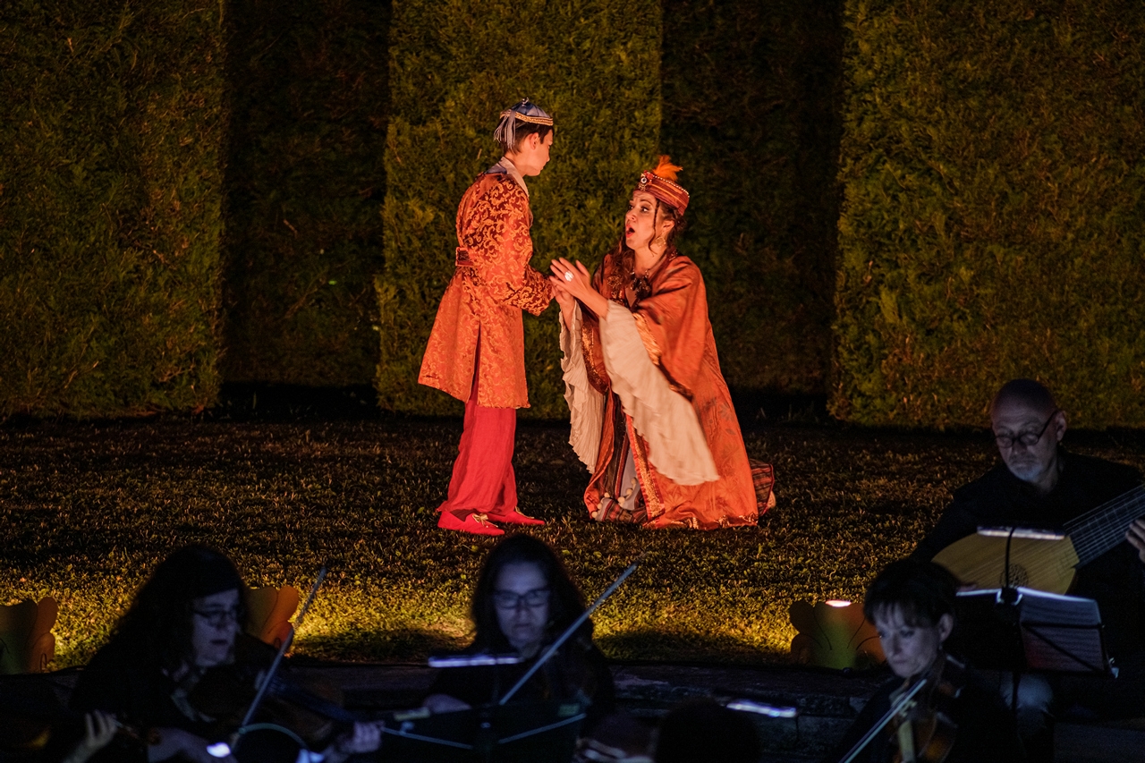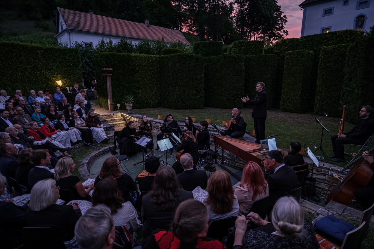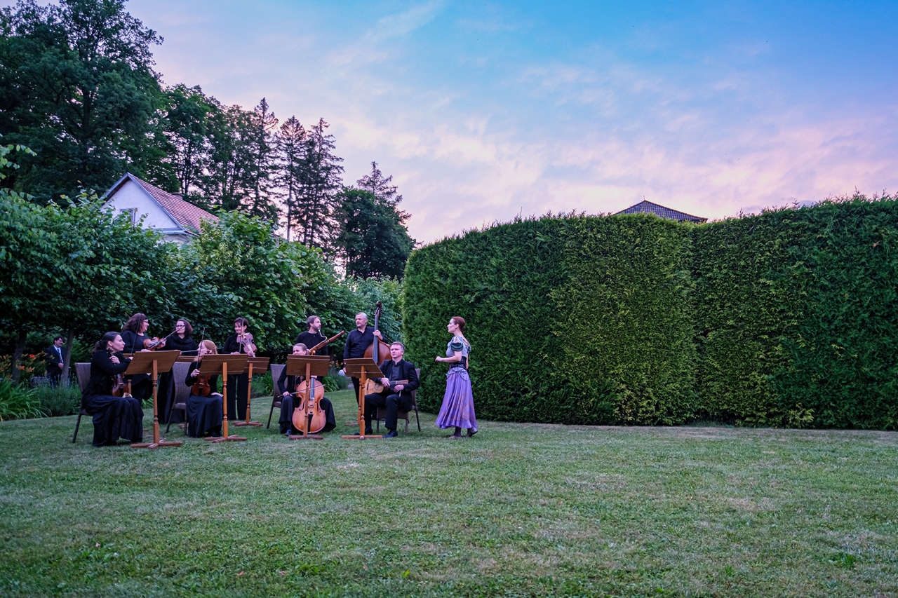 Plenérová produkce má své přednosti. Teplý pozdní letní večer je kouzelný sám o sobě, maličký kruhový prostor mezi pečlivě sestříhanými keři nabízí intimitu pro komorní muzicírování. Má ovšem i svá úskalí. Scénografie je neměnná, hudba je slyšet do všech detailů tahů smyčce a nacházení ideální barvy a dikce zpívaných tónů, teplota a vlhkost ovlivňuje ladění nástrojů… Celkový zážitek proto nemůže hledat srovnání s vymazlenými a zvukově zaoblenými produkcemi v koncertních sálech. A přece stojí za to. Je neopakovatelný. Navíc k němu patří komplexní atmosféra celého večera – osobní přivítání hostů s doprovodnou živou hudbou, návštěva interiérů, pohoštění, malé pěvecké a taneční produkce na různých místech v parku před vlastní inscenací…