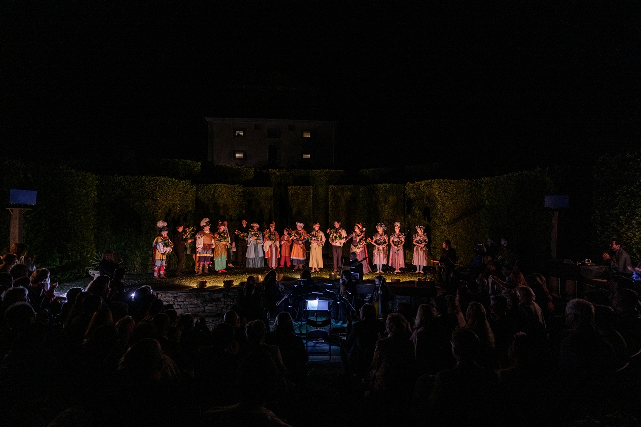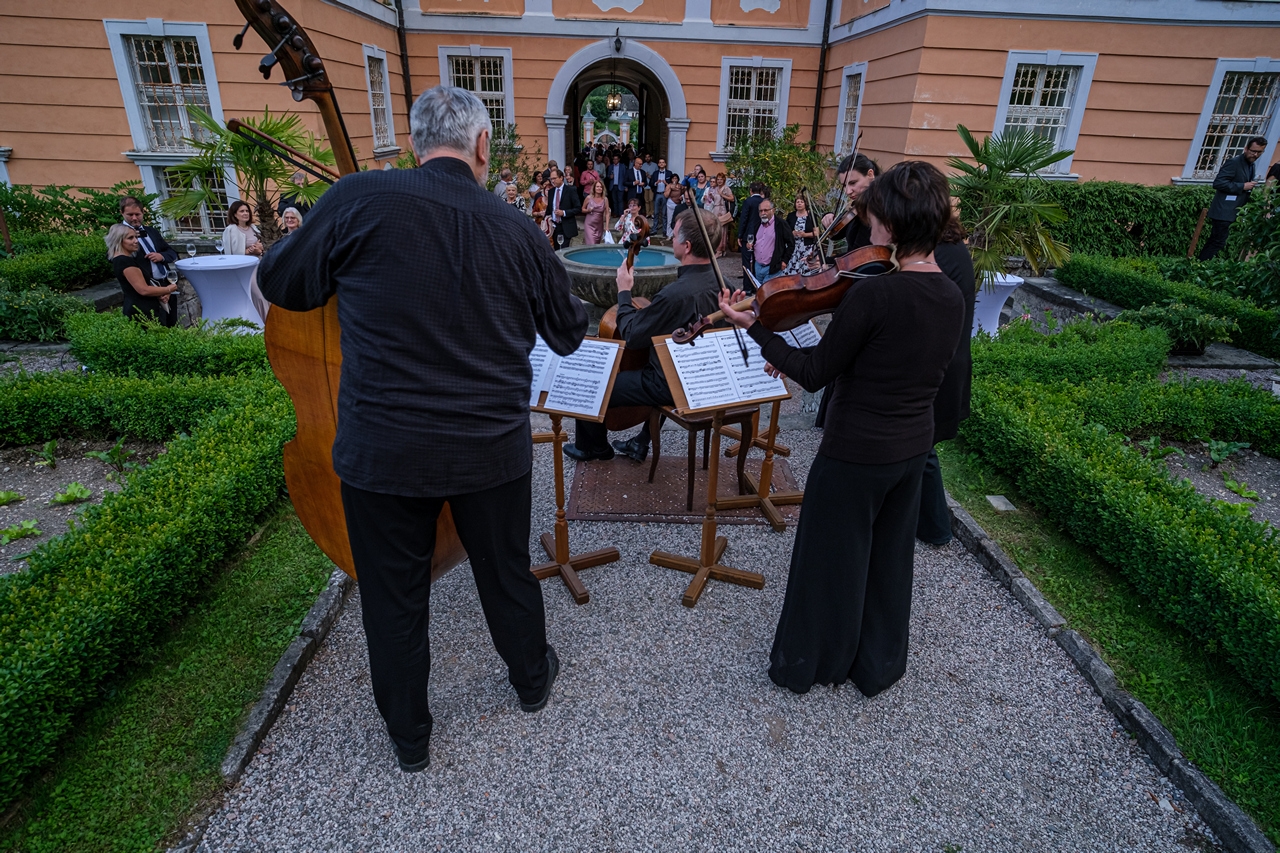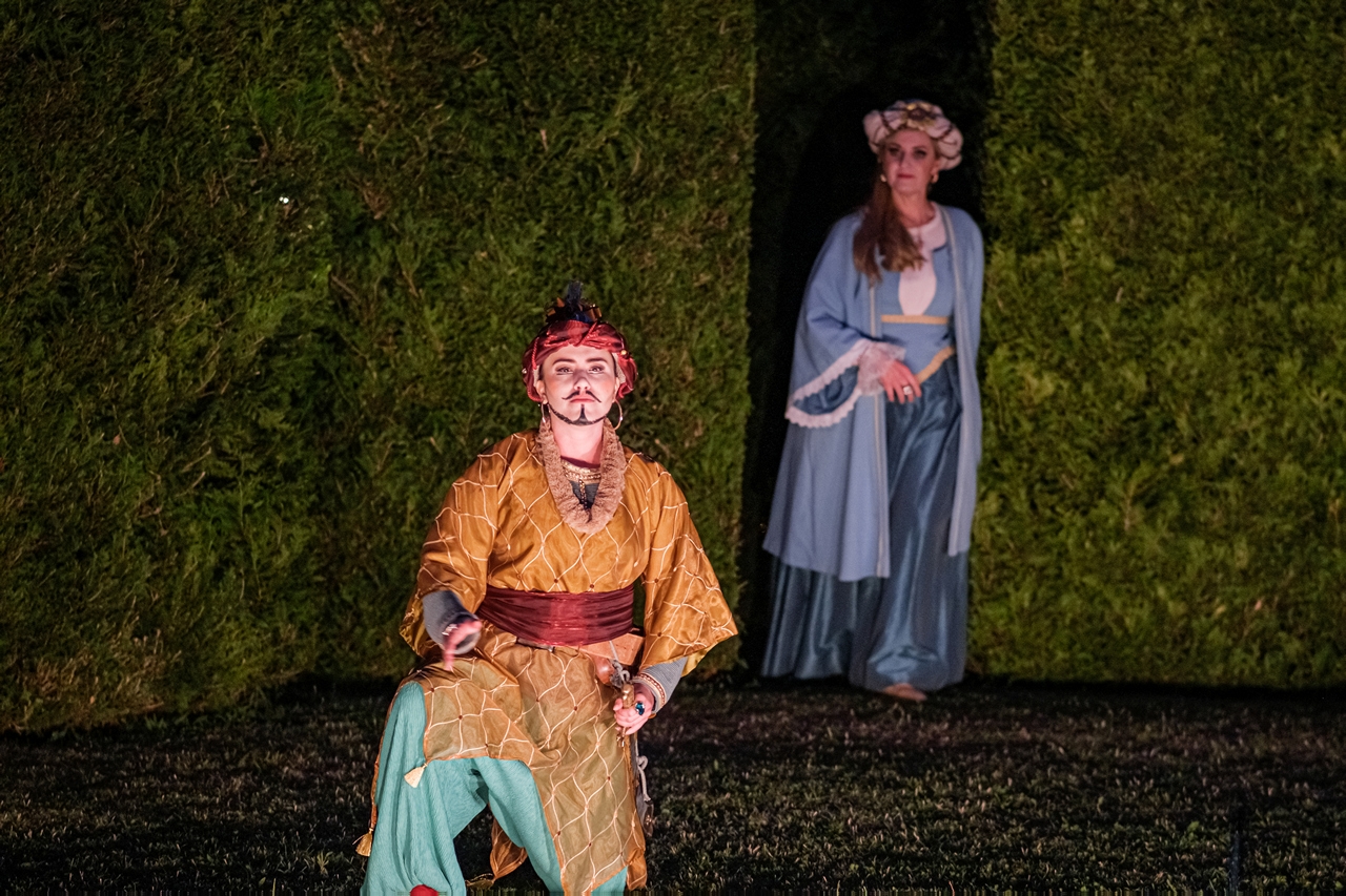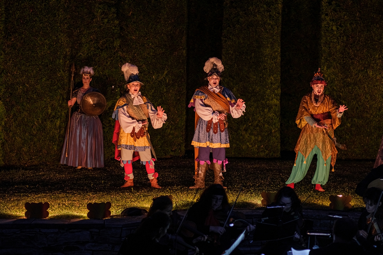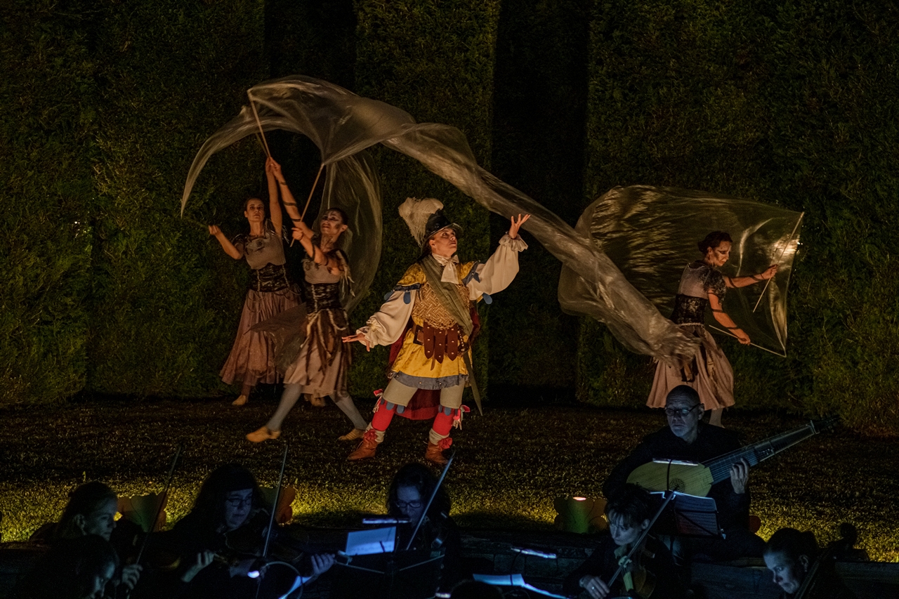 Plenérová produkce má své přednosti. Teplý pozdní letní večer je kouzelný sám o sobě, maličký kruhový prostor mezi pečlivě sestříhanými keři nabízí intimitu pro komorní muzicírování. Má ovšem i svá úskalí. Scénografie je neměnná, hudba je slyšet do všech detailů tahů smyčce a nacházení ideální barvy a dikce zpívaných tónů, teplota a vlhkost ovlivňuje ladění nástrojů… Celkový zážitek proto nemůže hledat srovnání s vymazlenými a zvukově zaoblenými produkcemi v koncertních sálech. A přece stojí za to. Je neopakovatelný. Navíc k němu patří komplexní atmosféra celého večera – osobní přivítání hostů s doprovodnou živou hudbou, návštěva interiérů, pohoštění, malé pěvecké a taneční produkce na různých místech v parku před vlastní inscenací…