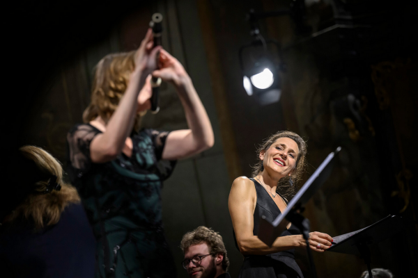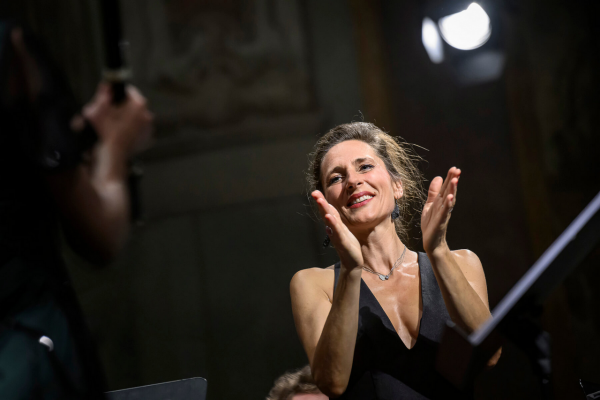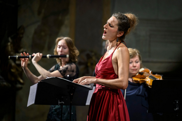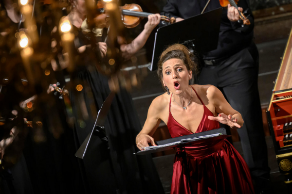 Před stejným problémem stála i pěvecká sólistka večera, francouzská lyrická altistka Delphine Galou. Nebylo pochyb, že byla pro koncert angažována výjimečná umělecká osobnost, která je ve staré hudbě „doma“. Profesní dráha altistku zavedla ke spolupráci s mnohými věhlasnými tělesy a pravidelně vystupuje na předních evropských koncertních scénách. Árie Orfea z oper Fuxe, Grauna i Glucka a k orfeovskému programu přidanou árii lo son rea dell´onor mio z Vivaldiho opery Argippo, která byla pro velký úspěch zopakována ještě jako druhý přídavek v závěru koncertu, interpretovala Galou suverénně, procítěně a s jasnou vizí, jak chce drama zpívaného žalu předat. Jak již bylo naznačeno, altistka byla zároveň konfrontována s problematickou kompatibilitou svého jemného, až křehkého hlasu s velikostí prostoru kostela, jehož akustika byla navíc ovlivněna zcela vyprodaným auditoriem. Kvůli tomu posluchač obdržel – obzvlášť pokud seděl v zadnějších řadách – poněkud zredukovanou verzi interpretace a mohl nabýt dojmu, že altistku soubor „válcuje“. Při odhlédnutí od tohoto faktu nezbývá než obdivovat skvělou interakci Delphine Galou s Janou Semerádovou, jakož i s koncertní mistryní Lenkou Torgersen, cembalistou Filipem Hrubým a celým souborem. Jako první přídavek v závěru koncertu zazněl úryvek z Vivaldiho pasticcia Andromeda Liberata. Tam kooperovala barokní flétna s altovým partem tak, až posluchač nabyl dojmu, že jde o duet sehraného uměleckého dua.