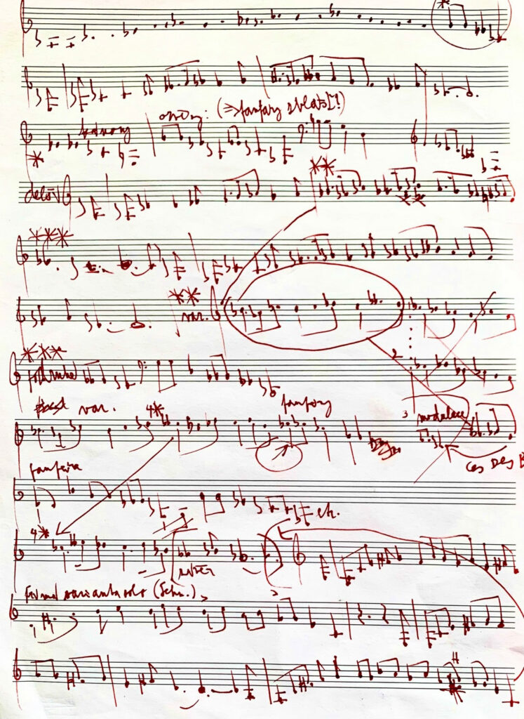 Mám Skrjabina moc rád: jeho secesní tvarosloví, ustrojení jeho frází, jeho harmonické myšlení, jeho nápřah, švunk, energii, let, třpytivost, poskakování, fakturu, jeho cítění tempa. Obrovský impulz pro mě byla jeho rytmika… Ale tohle mohu říct i o mnohých skladatelkách a skladatelích od 13. do 21. století, nejsem žádný skrjabinovec ve smyslu následování stylu. Především jde samozřejmě o Skrjabinovy klavírní věci, jeho orchestrálky jsou ďábelsky instrumentované, ale jsou tak nějak o krok zpět. Vlastně by se mi líbilo dokázat přenést svět Skrjabinových zralých klavírních skladeb do faktury komorní hudby. Opakovaně používám některé harmonicko-melodické konstrukce, se kterými se u něj lze setkat, jsou to vždy věci spojené s nápřahem vzhůru, s touhou anebo naopak s totálním zmarem (op. 51: č. 2). V těch momentech jako kdyby vytyčil intonace příznačné pro touhu proniknout napříč sférami (závěr Vers la flamme). Pár let nazad jsem narazil na zajímavý text, přednášku Osipa Mandelštama o Skrjabinovi. Jakkoliv je Mandelštam vzor střídmosti, u Skrjabina se trochu utrhl a je to prodchnuté takovým tím velkoruským mysticismem, který tady v naší kotlině prostě nelze bez újmy strávit. Vidím vlivy Skrjabina u Messiaena (možná i přes Vyšněgradského) anebo i u současného brněnského skladatele Pavla Zemka-Nováka – a obojí je fajn. Je to bez ohledu na mě punc oprávněnosti pověsti Skrjabinova talentu, jeho správnosti, aktuálnosti.