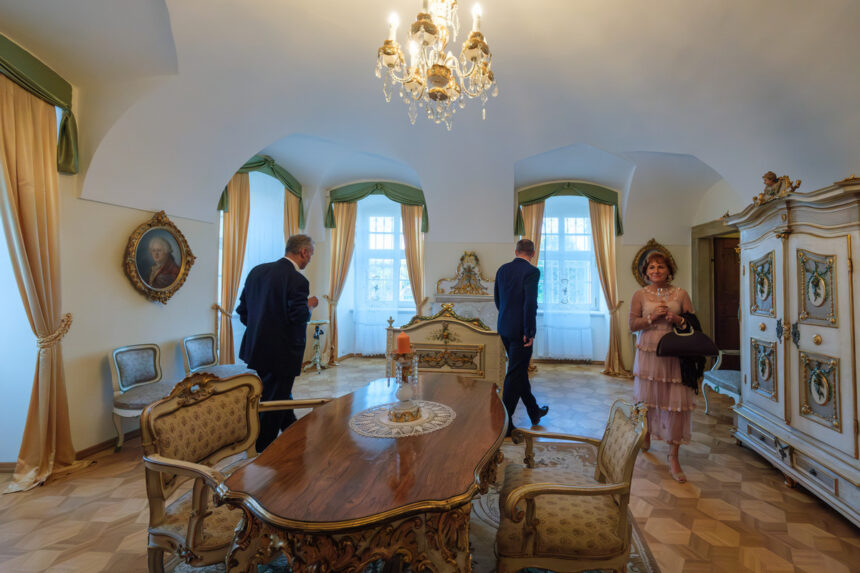 Úderem osmé hodiny večerní se otevře zámecká brána a na prahu se objeví zámecký pán s chotí a pozvou hosty dál. Ti najdou uvnitř pohoštění a mohou si prohlédnout některé ze zámeckých komnat. Možná by k nim neškodil aspoň krátký výklad či nějaké tištěné podklady – někdo možná jezdí do Nových Hradů pravidelně a všechno už zná, někdo jiný ale třeba ne.