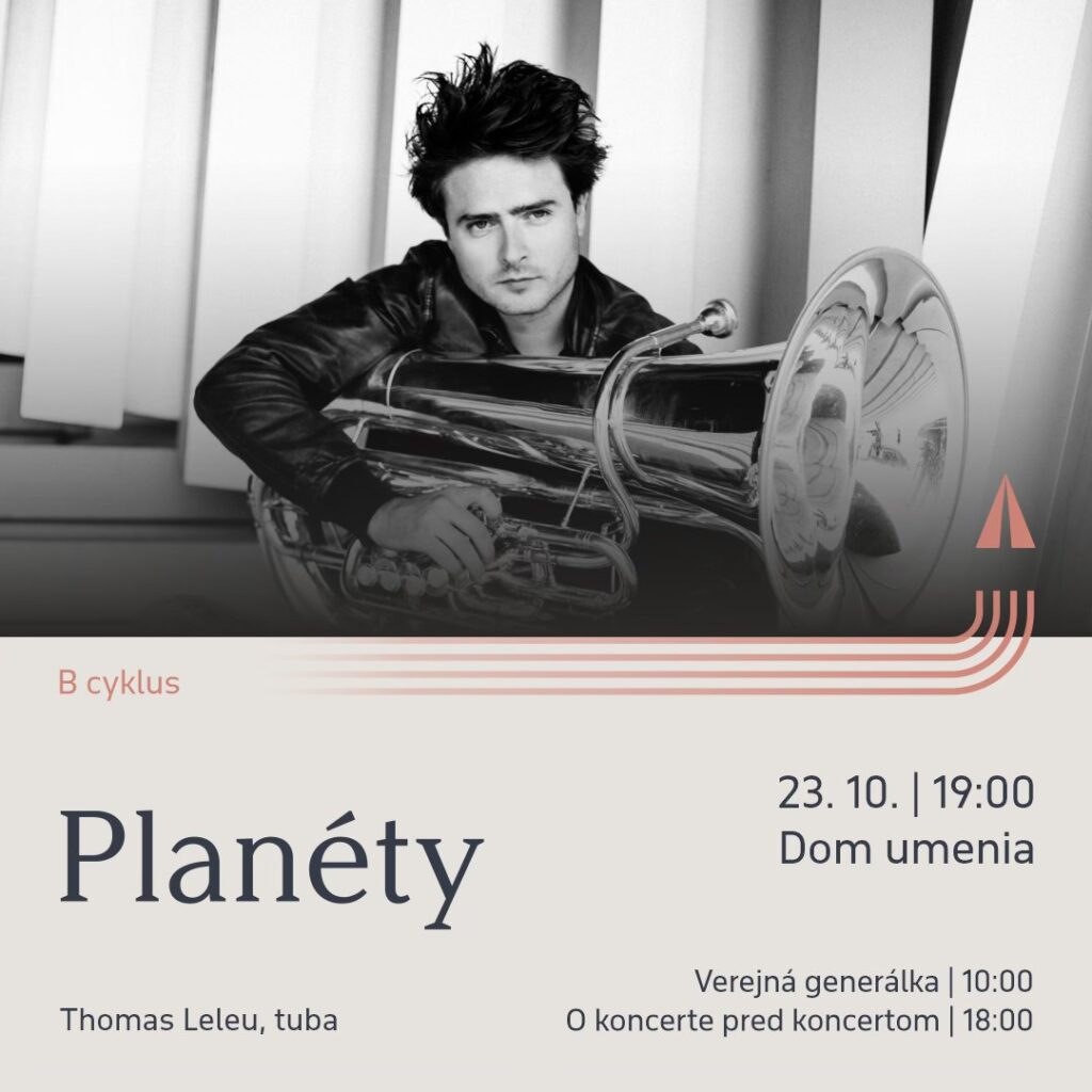 O týden později košičtí diváci uslyší díla trojice jiných autorů. Prokofjevova Symfonie č. 1 D dur, op. 25, „Klasická“, jedno z nejznámějších děl skladatele, je příkladem skladatelova neustálého hledání originálního hudebního jazyka. Jedná se o skladbu s jasnou, srozumitelnou strukturou a Prokofjev o ní řekl, že je to symfonie, „kterou by Haydn mohl napsat, kdyby žil v naší době“. Koncert pro tubu a orchestr f moll od Ralpha Vaughana Williamse byl složen v roce 1954. Jedná se o první významný koncert napsaný pro tubu, který se stal základem instrumentálního repertoáru. A v předmluvě k The Planets Gustav Holst poukázal na to, že jednotlivé skladby v cyklu nemají žádný program a že samotné názvy by měly vést posluchačovu představivost. 23. října účinkují Státní filharmonie, dirigent Tomáš Brauner, tubista Thomas Leleu a vokální soubor Gregoriana (ženský sbor).