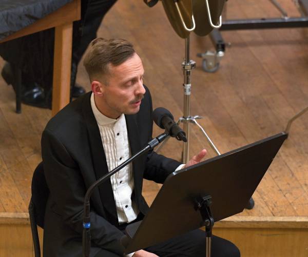 Na umeleckej produkcii sa ako autor a zároveň ako interpret po dlhšej dobe v rámci koncertov Slovenskej filharmónie znova zúčastnil prozaik Michal Hvorecký, jeden z najvýraznejších predstaviteľov mladšej slovenskej literárnej generácie, tvorca, esejista a publicista s jednoznačnými, ostro a zreteľne formulovanými názormi na spoločenské a politické dianie, svedčiacimi o jeho presvedčivej autorskej i osobnostnej integrite. Hvorecký je dôverným znalcom Wagnerovej opernej tvorby, dlhodobo sa jej venuje a často o nej zasvätene aj píše. V dvoch verbálnych vstupoch, hlasovo vychádzajúcich z útrob orchestrálneho telesa, predniesol kvalitnú a výsostne zaujímavú autorskú esej, v ktorej dokázal zrekapitulovať dejovú osnovu tetralógie bez toho, aby spomedzi jej protagonistov spomenul jediné meno.