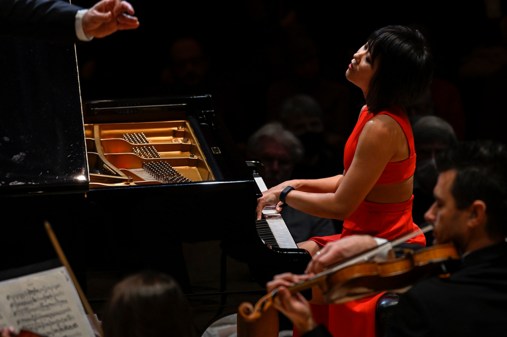 „Nejenže v jejím podání zazní dvě ze čtyř skladeb večera, navíc bude Yuja Wang celý večer dirigovat, z toho polovinu programu od kláves.“