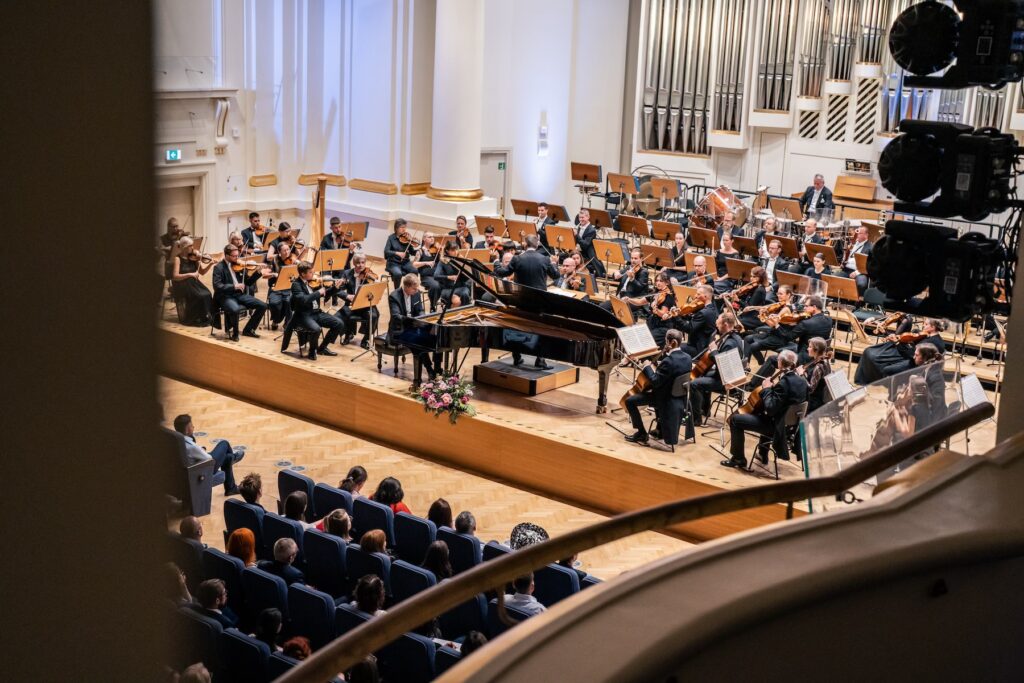O zvukových parametrech se přesvědčili hráči Moravské filharmonie Olomouc již v první skladbě, kterou si pořadatelé objednali na zahájení. Koncertní ouvertura E dur, op. 12 Karola Szymanowského je z roku 1905, kdy mladý skladatel žil v Berlíně a byl ovlivněn hudbou Richarda Strausse. Patrnou inspiraci nese již zahájení skladby, mohutné fanfáry, břeskné žestě, které brzy ustupují melodii ve smyčcích. Pomalou druhou větu zahajují violoncella měkkou melodií, kterou přejímají housle i lesní rohy, kterými skladatel, stejně jako Richard Strauss, nešetřil. Zpěvné legato vytvořilo klenutý melodický oblouk, ve kterém si nástroje předávají melodické epizody v plynulém hudebním proudu s klidným, v tomto případě i znělým, fagotovým sólem (Martin Kostelecký). Hrozivé accelerando zabouřilo v disonancích, dynamické vlny se vzepjaly do fortissima a poté zase zklidnily v jasné ploše věnované nejvyšším smyčcům. Další větu uvádí sólový vstup melancholické violy (Pavel Hána), která si notuje spolu s harfou (Anastázie Tomečková). Efektní závěr, hodný pozdního romantismu, prověřil možnosti hudebníků i akustiky sálu.