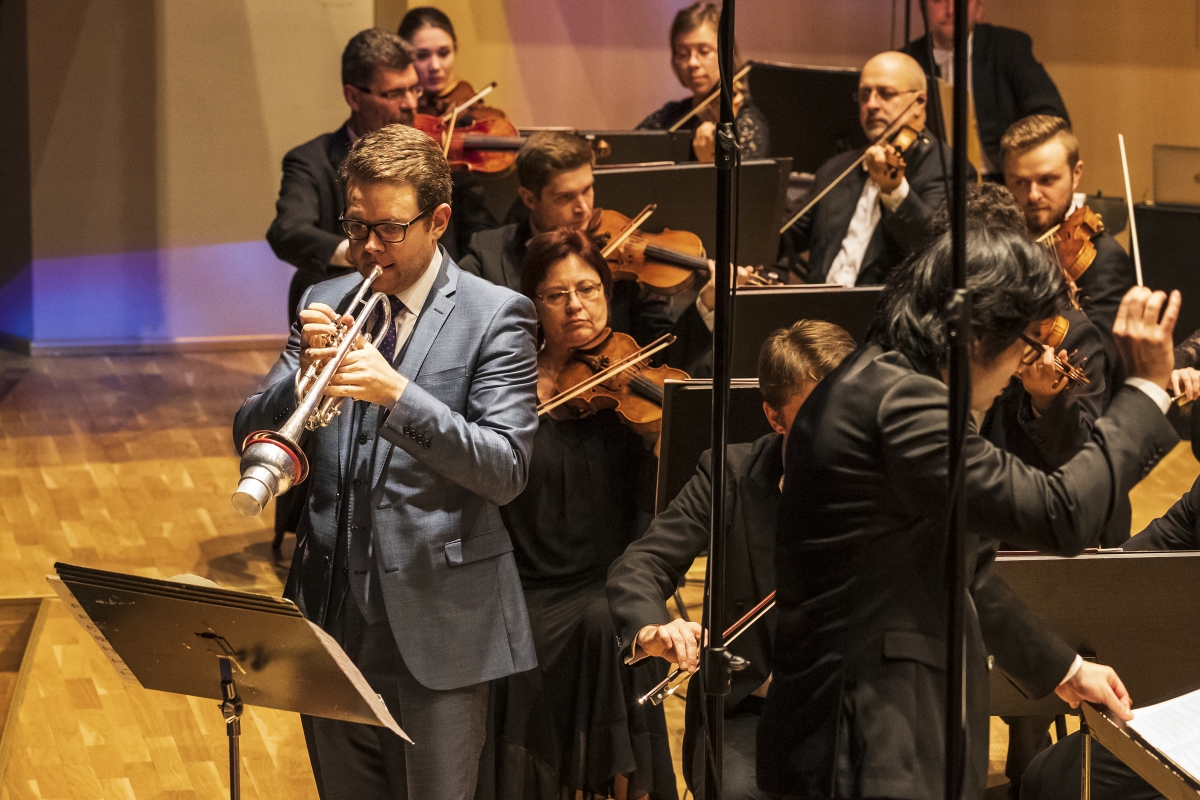 Byť skladatel Bernd Alois Zimmermann (1918-1970) nebyl Američan, ale Němec, jeho Koncert pro trubku in C a orchestr (1954) vychází z amerických reálií. Autor použil černošský spirituál Nobody knows de trouble I see, protože tak reagoval na rasovou segregaci ve Spojených státech v padesátých letech. A zpracoval ho formou spojení tří historicky a stylisticky odlišných hudebních forem: chorálu, volných variací ve dvanáctitónové řadě a jazzu. Sólového partu se v Hradci Králové ujal velšský trumpetista Huw Morgan (mimochodem vítěz soutěží Pražského jara). Úvod patřil jeho až mysteriózně znějící trubce s dusítkem, zatímco orchestr se přidával pozvolna, s údery velkého gongu. Posléze už zněla trubka bez dusítka, dravěji, okolo narůstalo jazzové pnutí protkané saxofonovými sazbami, které vybídlo sólistu k chrlivému partu, evokujícímu free-jazzového věrozvěsta Dona Cherryho. Hudební proud nabýval na intenzitě, zvlášť, když se ozvaly dokonce elektronické klávesy. Po strhující gradaci došlo ke zlyričtění, kdy trubka opět s dusítkem spirituál cituje nejúplněji. Ale jak! Miles Davis by byl nadšen… Ovace publika přiměly trumpetistu zahrát přídavek. Byla jím skvostná Elegy for trumpet and strings současného švédského skladatele Rolfa Vallina.