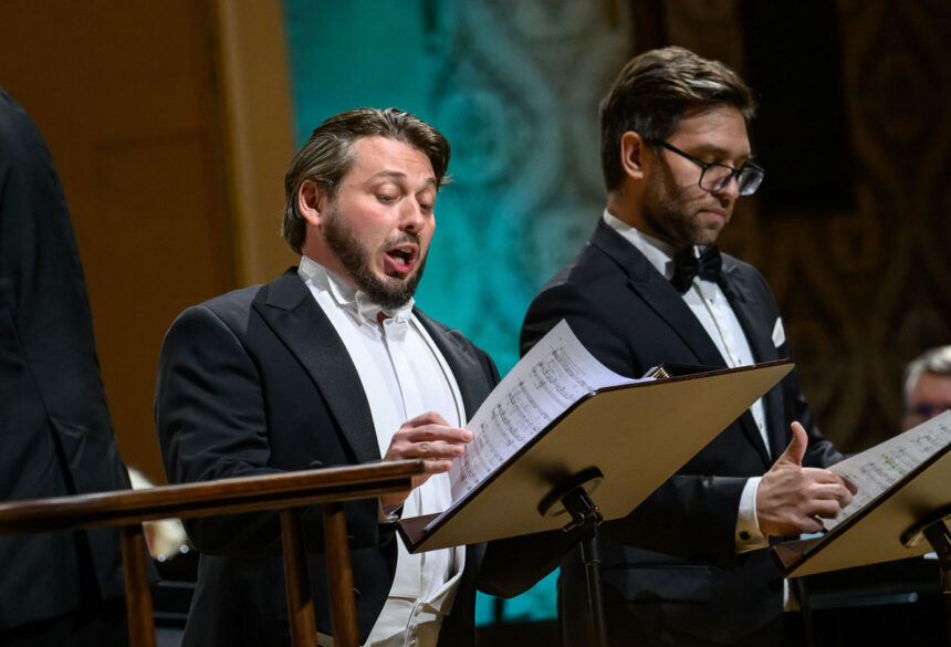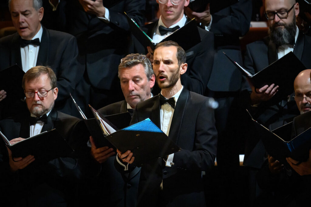 Sbor zaujal nadšením a mladistvou energií, s jakou přistoupil k nelehkému dílu, navíc, jak už zaznělo, na hebrejský text, a mistrně zvládl složitou rytmiku i dramatickou barevnost skladby. Bernsteinovy žalmové obrazy působí živě, hlasitě a expresivně, a přitom si zachovávají duchovní vážnost textu, byť poněkud teatrální. Zvláštní pochvalu si zaslouží Vojtěch Krása z Kühnova dětského sboru, který se ujal chlapeckého sóla. I když byla na jeho výkonu patrná přirozená nervozita (aby ne!), svůj part přednesl naprosto soustředěně, s čistými výškami a dlouhými kantilénami. Jeho jemný hlas vytvořil nádherný kontrast k bouřícímu sboru a dodal skladbě další rozměr. V menších sólech vystoupili členové Pražského filharmonického sboru – Grażyna Biernot (soprán), Jana Kuželová (alt), Bronislav Palowski (tenor) a Mikhail Pashayev (bas) – a prokázali svou erudici v interpretaci náročných sborových děl 20. století. Do kantáty Chichesterské žalmy se poprvé v rámci tohoto večera zapojilo i maďarské bicí uskupení Amadinda Percussion Group, které předvedlo svůj part skvěle. Jejich precizní rytmická hra a bohaté barvy bicích nástrojů podtrhly Bernsteinovu živou a energickou hudbu.