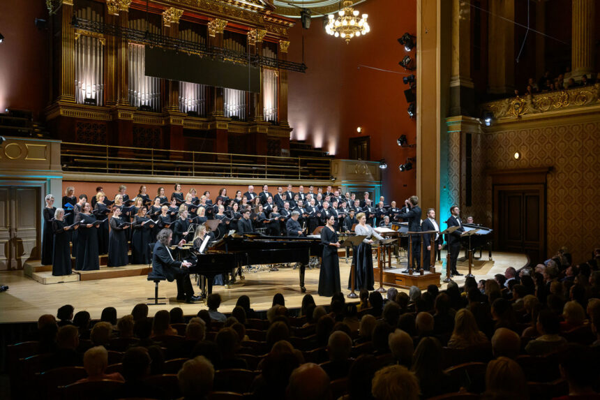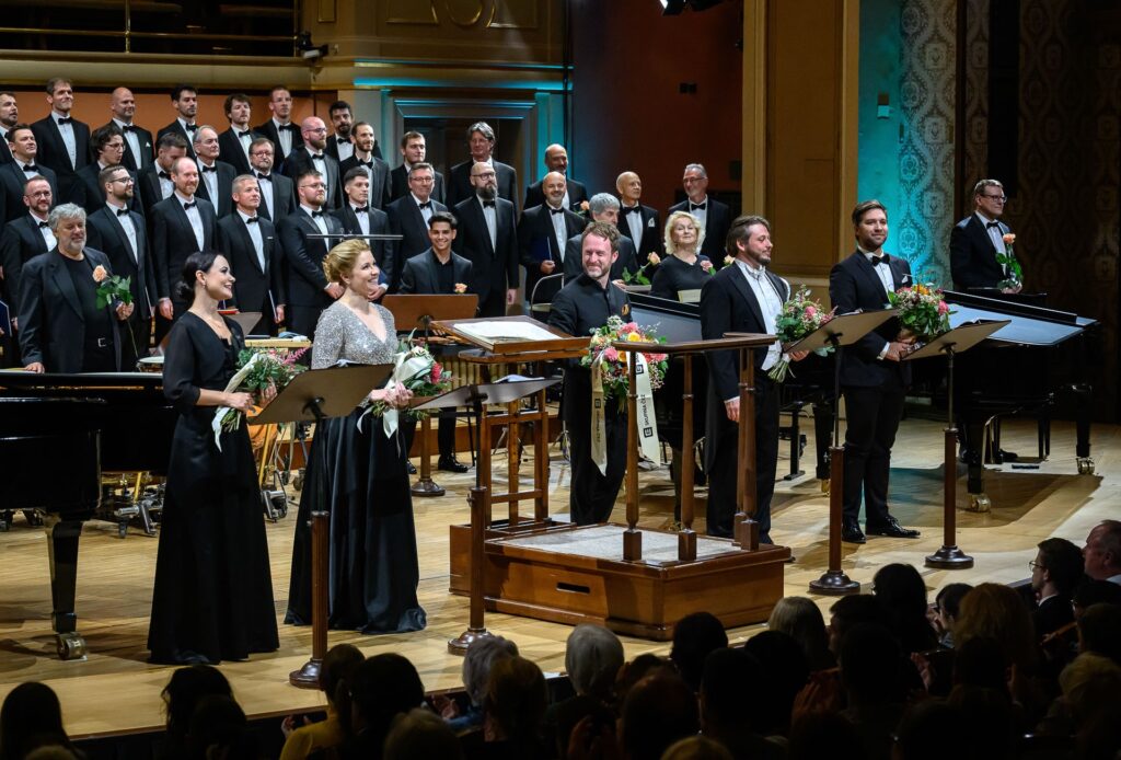 Výraznou kvalitu přinesla opět Amadinda Percussion Group, která svou precizní a rytmicky čistou hrou podtrhla Stravinského rytmickou energii. Velkou roli sehráli také čtyři klavíristé – Marcel Javorček, Lenka Navrátilová, Daniela Valtová Kosinová a Jan Dušek, jejichž precizní výkony doplňovaly jiskrnost hudby. Celý sbor, vedený Lukášem Vasilkem, „diktoval“ zvukové vlny s téměř vojenskou přesností, vytvářeje kompaktní, pestrý a energický výkon, který místy připomínal zvukový ohňostroj – jiskrnost, bohatý rytmus a rozličné zvukové vrstvy naplňovaly Dvořákovu síň až po strop. Svatba zde zazněla jako fascinující setkání rituálu a avantgardy, v němž se jednotlivé hlasy i nástroje spojily do dokonale koordinovaného, téměř hypnotického celku a Pražský filharmonický sbor opět prokázal svou mimořádnou schopnost interpretovat díla 20. století. Pochvalu si zaslouží nejen za graficky velmi vydařenou koncertní brožuru, ale zejména za neotřelou dramaturgii (vzdor mé předchozí výtce), která do zahajovacího večera nezařadila ani jeden kus tzv. „na jistotu“, ale vybrala opravdu objevné a obohacující perly z hudby 20. století.