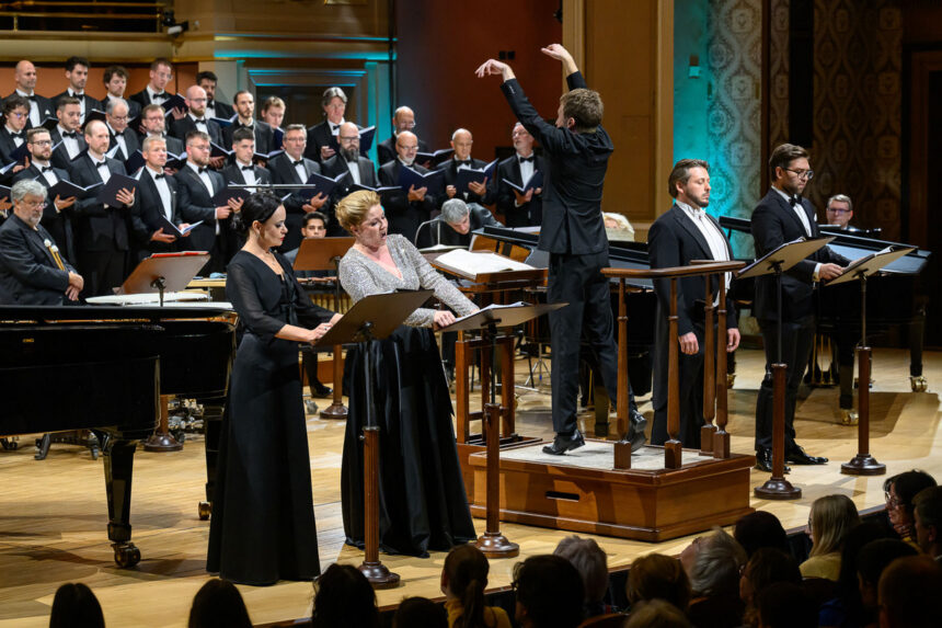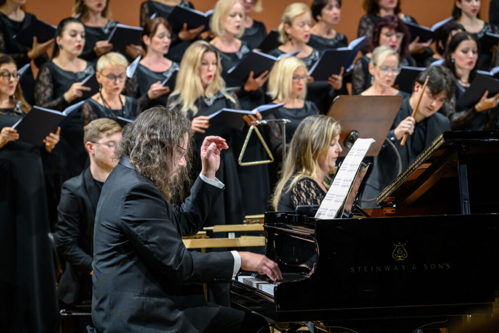 Závěr večera patřil Igoru Stravinskému a jeho Svatbě (Les Noces) – dílu, které působí jako rituální divadlo a zároveň je neúprosně perkusivní a avantgardní. Skladba, zcela zbavená romantického nánosu, zní prostřednictvím čtyř klavírů, bicího souboru, smíšeného sboru a čtyř vokálních sólistů jako fascinující, rytmicky přesný „mechanický obřad“.