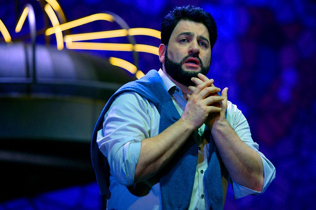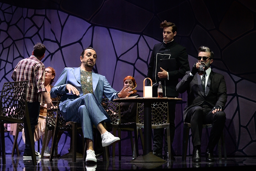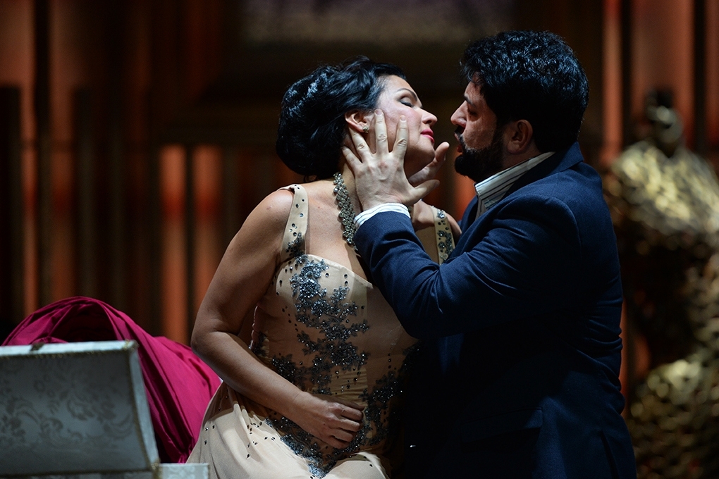 Režisér do centra pozornosti realisticky postavil svět umělců. 30. dubna už v úvodních, efektních, živelně rozehraných scénách se sólisty a s velmi dobrým Chœur de l´Opéra de Monte-Carlo (sbormistr Stefano Visconti) v prostředí venkovního baru, kde introvertní Manon poznává sebevědomého a zábavného studenta Des Grieux, strhl na sebe dle očekávání velkou pozornost manželský pár Anna Netrebko a Jusif Ejvazov. Z interpretace pěvkyně dýchala lehkost, grácie, vnitřní hloubka, koketérie a srdečnost. Projev pěvce byl z počátku radostný, zábavný, koketní a vřelý. V temnějším dramatickém vokálu prosvěcovaly jasně i jeho syté zářné vyšší polohy. Do děje vnesl hned z počátku mladistvý elán dobrý portugalský tenorista Luis Gomes, který extrovertně ztvárnil Edmonda. V pozadí baru byl výjev krásné mozaiky symbolizující Manoninu tvář. Ve druhém jednání se Manon v pojetí režiséra stane múzou pro Géronta, který je výjimečným sochařem, tvořícím se zápalem nové instalace žen. Géronta de Ravoir ztvárnil velmi dobrý italský basista Alessandro Spina. Sebestředného umělce zahrál znamenitě.
