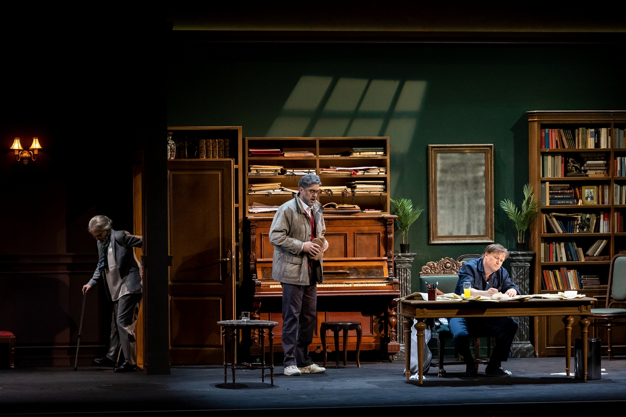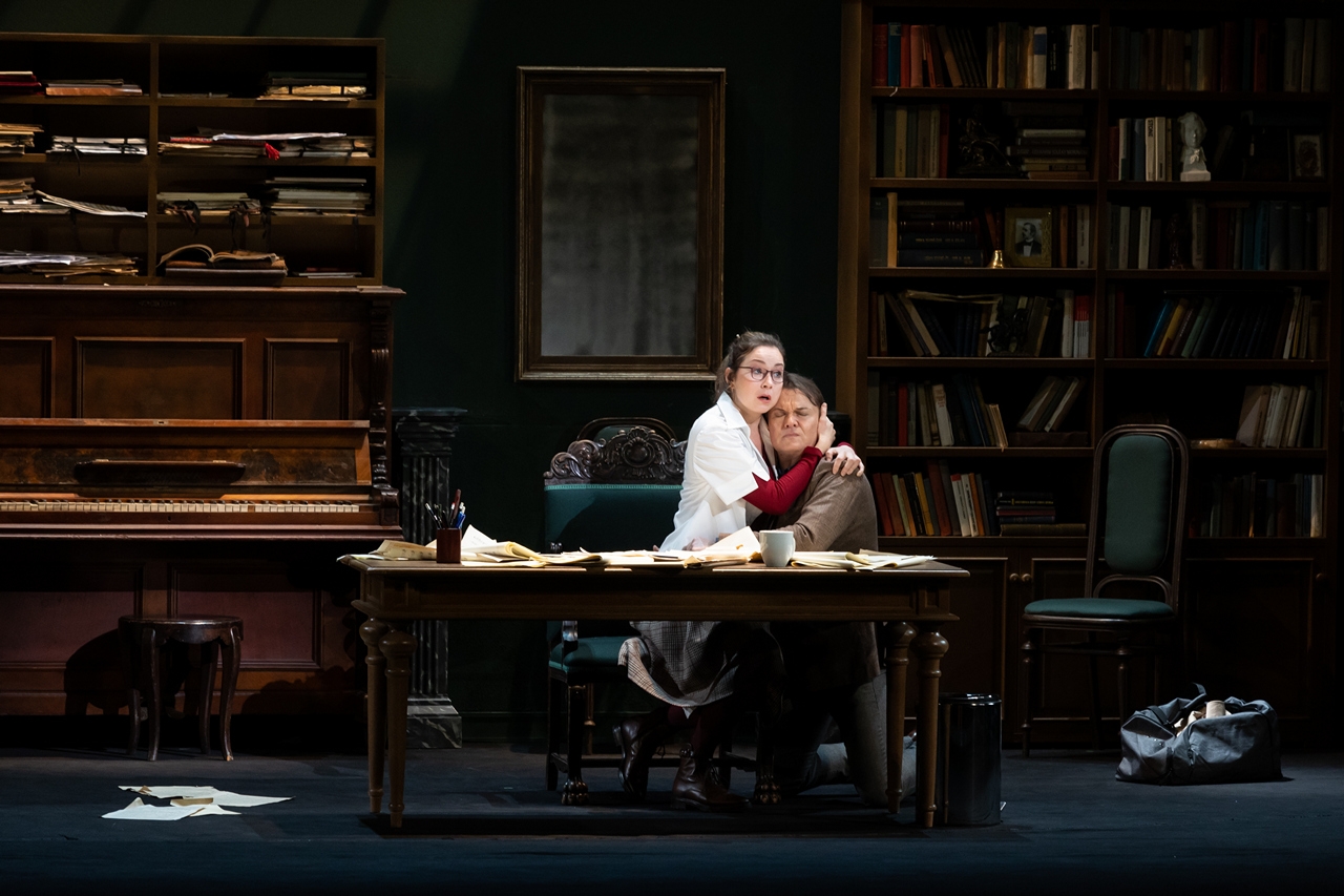 Jedným z faktorov, ktoré vyznenie inscenácie ovplyvnili najviac, bol samozrejme výkon hlavnej hrdinky, v tomto prípade Svetlany Aksenovej. Herecky akoby si od Grety udržovala trochu odstup – nepôsobila, ako by sa do role priamo vciťovala. Skôr som mala dojem, že pohnútky svojej postavy analyzuje a divákovi ich potom, s trochou deskriptívnosti, prezentuje. Asi najautentickejší bol jej výkon v treťom dejstve, keď dopisovala partitúru: suverénna, sebaistá, trochu chladná; úplne v kontraste k rozrušenému Fritzovi. Čo sa týka predstaviteľa Fritza, Aleša Brisceina, upútal ma akýsi sarkastický rozmer, ktorý svojej postave dokázal dať. Akoby divákom našepkával, že Fritz napriek vznosným slovám o vzdialenom zvuku nie je žiadnym veľkým skladateľom – a, vo svetle jeho nezrelého správania sa ku Grete, ani veľkým človekom.